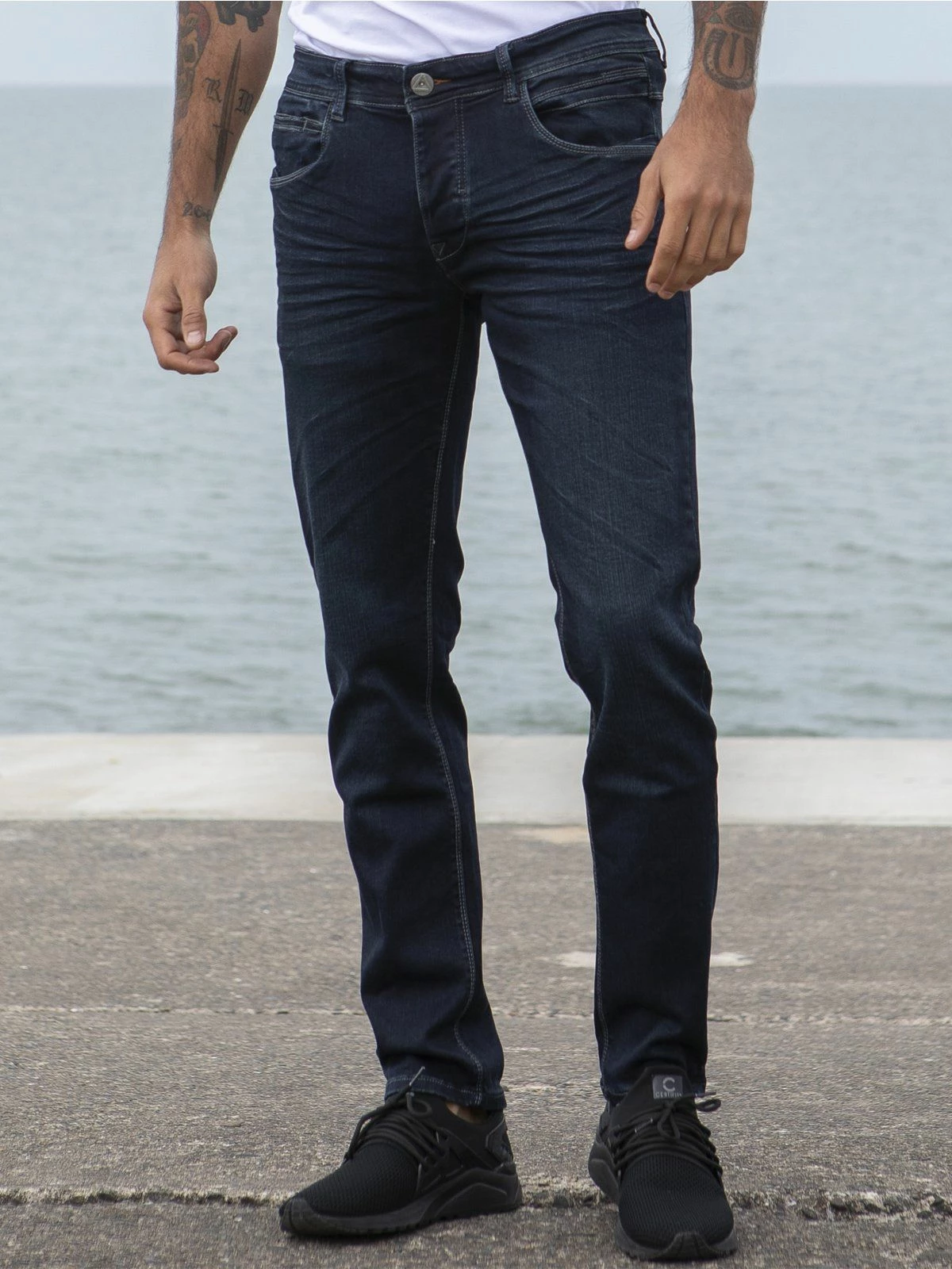 Update your look with the season’s trendiest designer jean shape: tailored from body-hugging black cotton-blend denim with lycra for maximum stretch and comfort, these ETO Reflex men’s super skinny jeans are perfect for men with an active lifestyle. The super skinny cut is tight all over the leg, making a confident designer fashion statement. A simple five-pocket style emphasizes the streamlined silhouette while an ETO branded button and studs add a polished finishing touch.