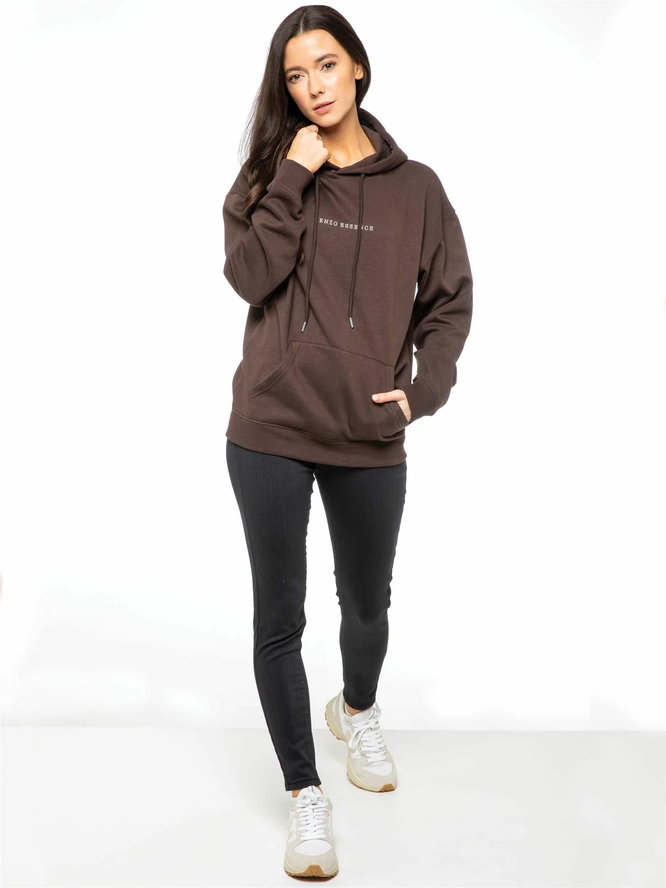 Enzo Ladies Oversized Essential Hoodie, Oversized and Fleece Lined for Comfort, Brand logo embroidered on the front, Pullover, Hooded with Cuffed Wrists, 50% Cotton and 50% Polyester, Machine Washable.