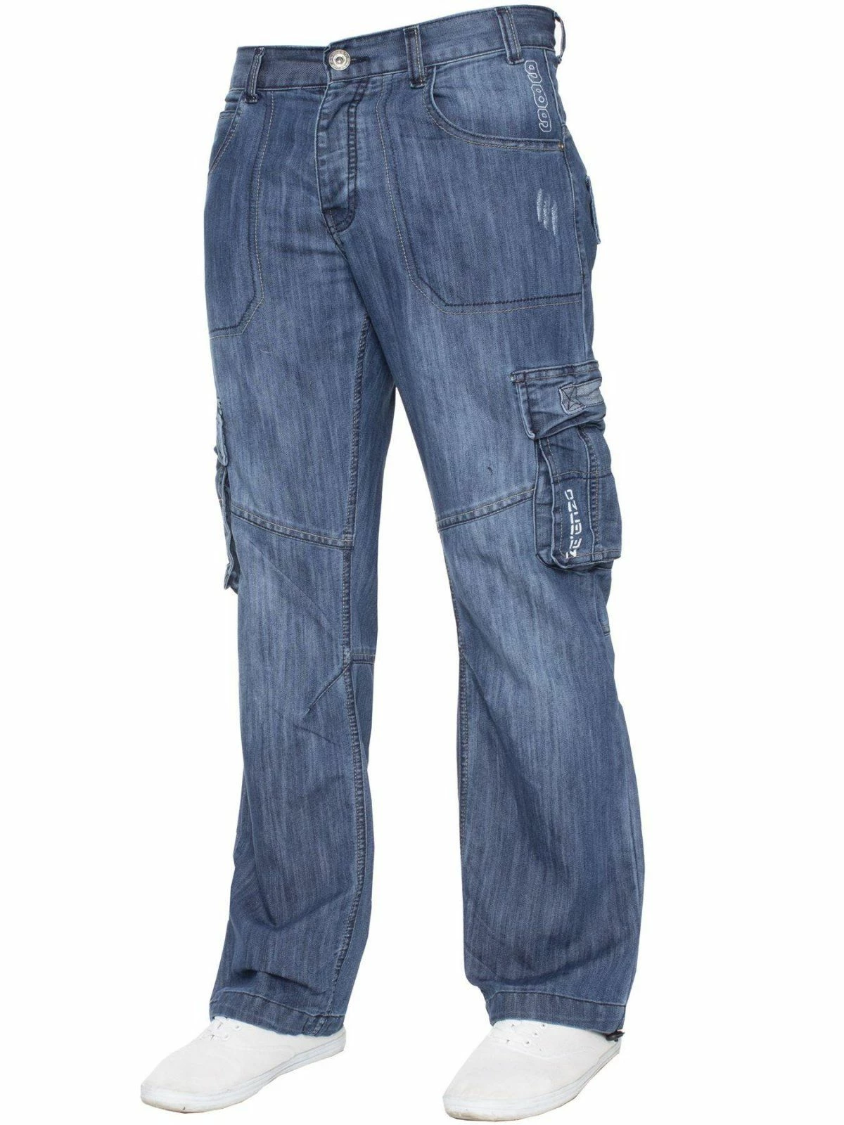 Go back to your roots with these comfortable 7 pocket dark blue combat jeans, featuring cinch buckle to back and draw cords to the bottom of the leg for a more custom fit. Finished off with printed branding to front and back, subtle distressed detail and button fly for a comfort fit.