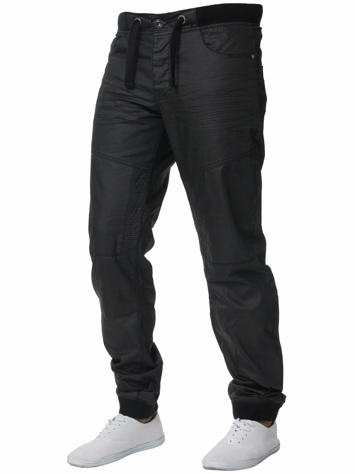 Crafted in soft, hardwearing navy denim, these mens designer jeans feature a ribbed drawstring waist and white ankle cuffs, a zip fly with Enzo jeans branded metal button and contrast panels in light blue on the coin pocket and back yoke. Cleverly designed seams through the leg offer a comfortable fit with ease of movement; these cuffed jeans are a stylish option whether for a busy working day or relaxed weekends.
