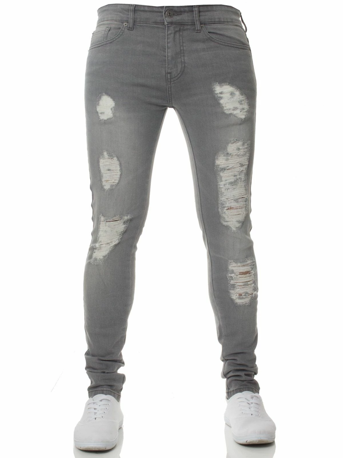 Capture a crisp, clean look this season with Enzo mens super skinny jeans in light stonewash stretch denim. These super skinny men’s jeans are tight from thigh to ankle for a contemporary look. With zip fly, silver button, belt loops at the waist and leather logo. Crafted from soft, natural cotton with a little stretch for ease of movement; the streamlined silhouette of these mens designer jeans will bring an urban look to your wardrobe whether for summer or winter. Available in blue, black and grey.