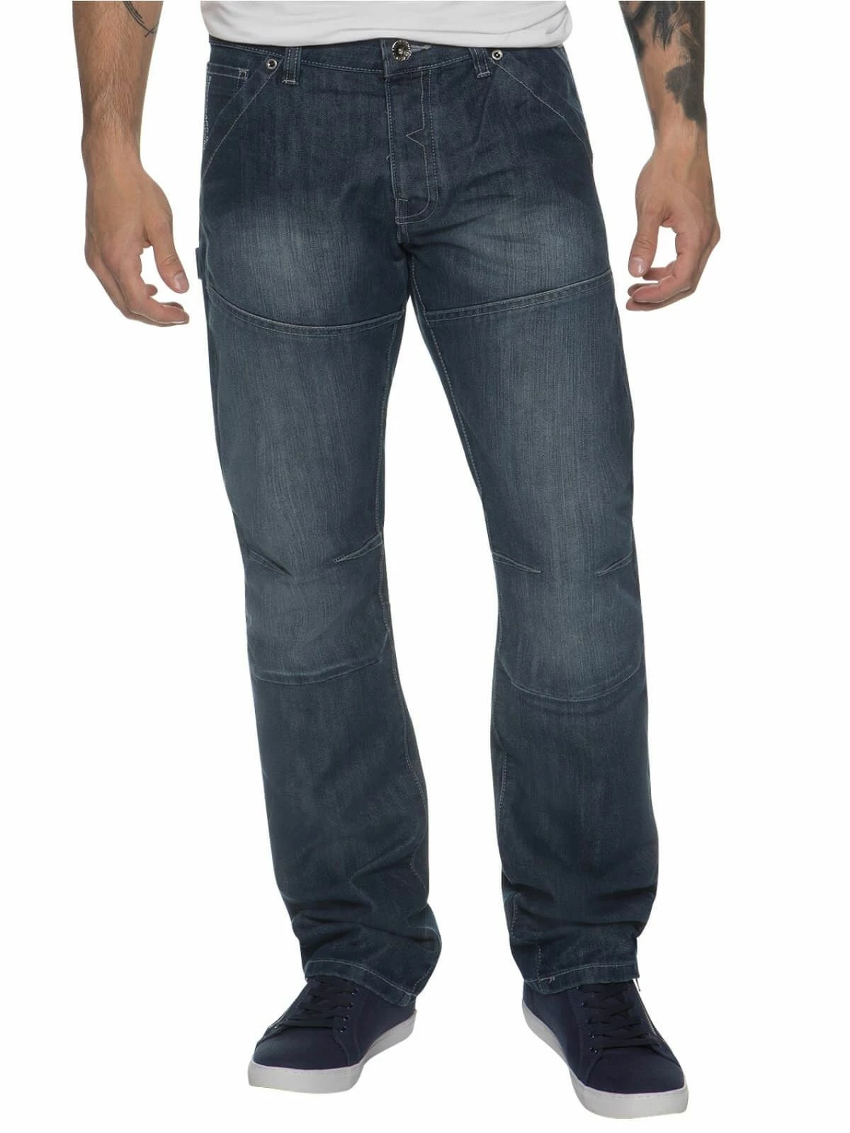 Turn up your style a notch with the latest midwash mens jeans. Enzo straight fit jeans in cotton blend blue denim feature a zip fly, double belt loops, seams at knee and thigh and back pockets with flaps. Straight leg jeans never go out of style and are perfect for relaxed weekends; tailored to sit just below the natural waist, they suit all figure types and with sizes up to 48, theres a pair of Enzo jeans to fit everyone.