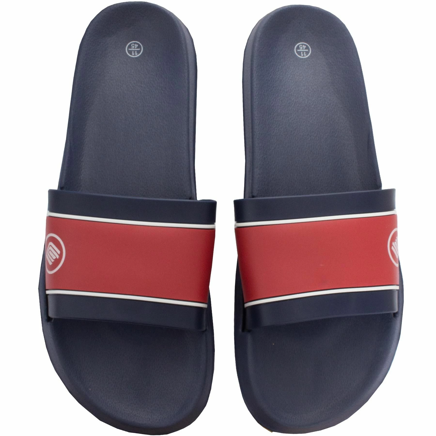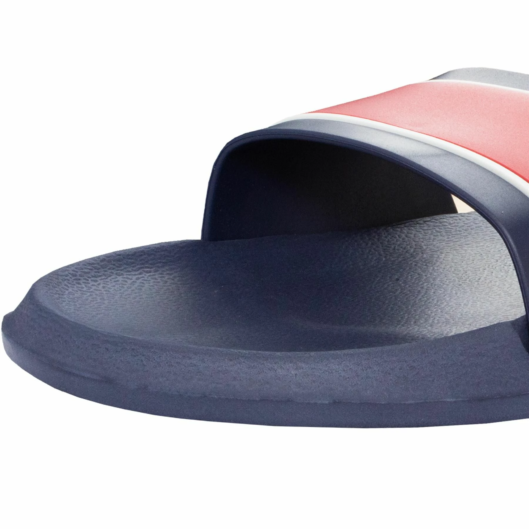 Rinse off after the pool with these must have simple staples. Crafted from synthetic material, these breathable slip on slides features a printed brand logo, contrasting coloured trim and are cushioned for a comfortable wear.