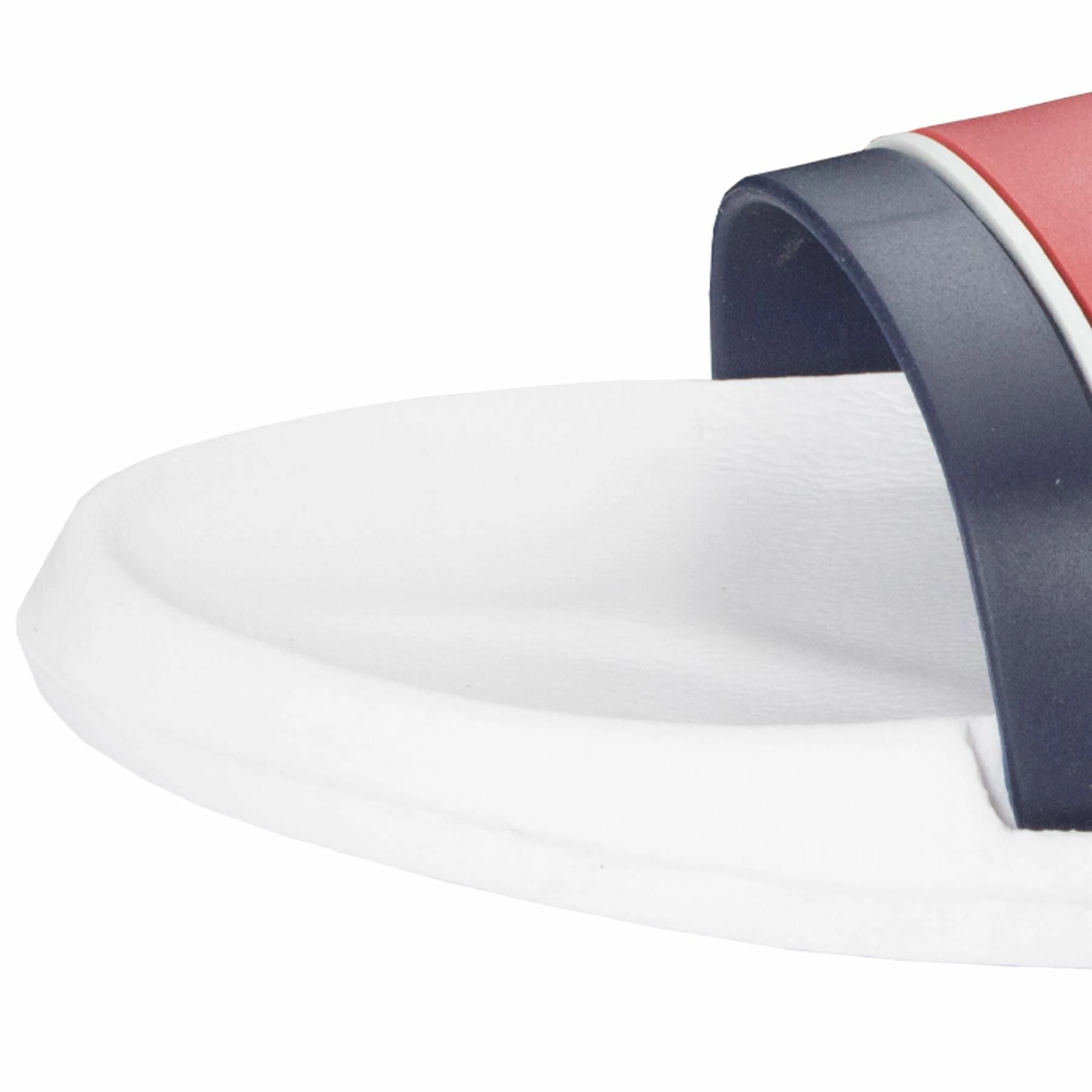 Rinse off after the pool with these must have simple staples. Crafted from synthetic material, these breathable slip on slides features a printed brand logo, contrasting coloured trim and are cushioned for a comfortable wear.