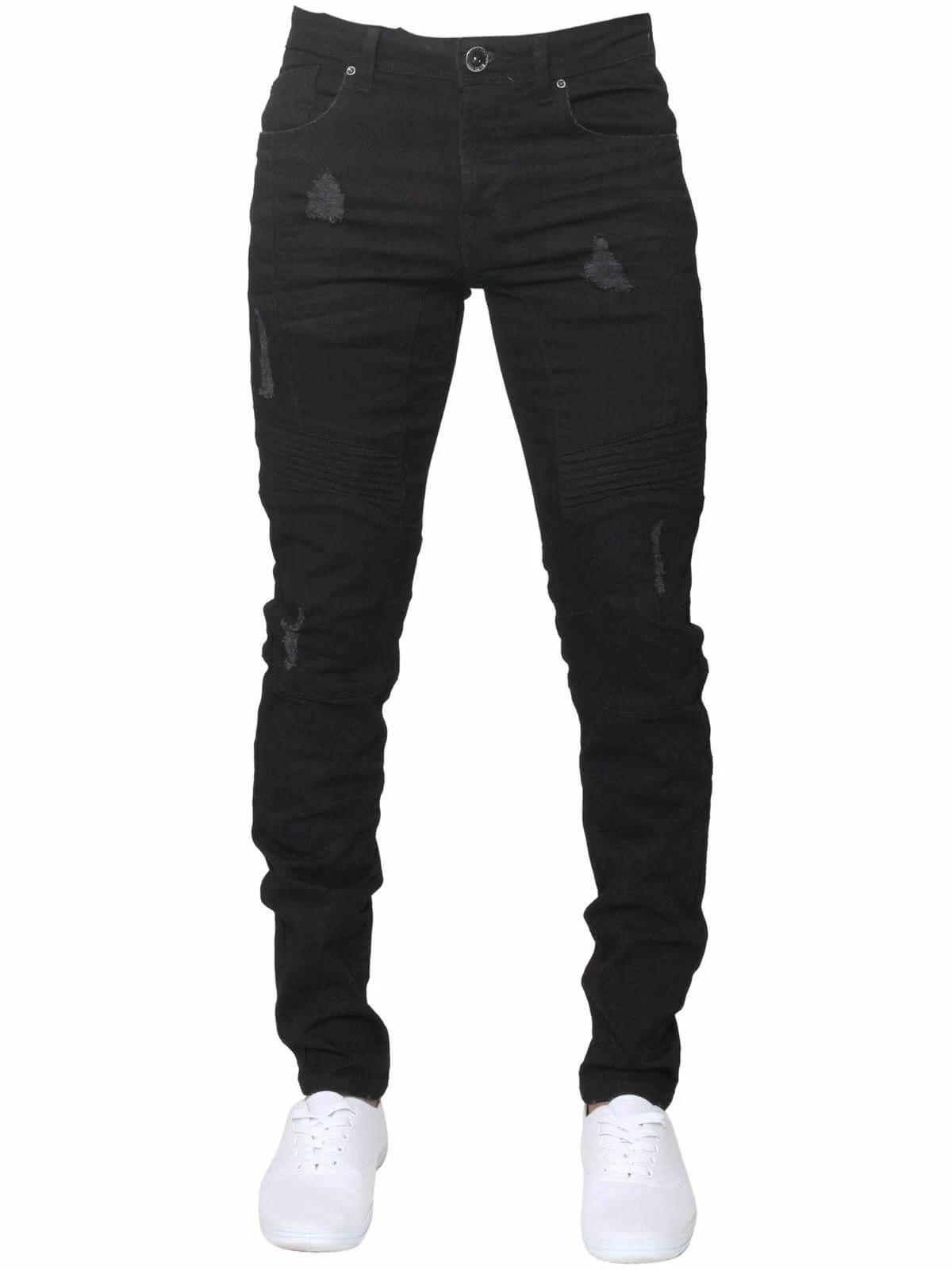Tailored in white cotton stretch denim for a super slim fit through the leg, this 5 pocket design features biker stitching at the knee, bleached and distressed details, a button fly fastening and a waistband with black PU brand tag. Branded buttons and rivets complete this on-trend skinny style which looks great with any Enzo t-shirt. With a wide range of sizes available to shop online, theres a pair waiting for you.