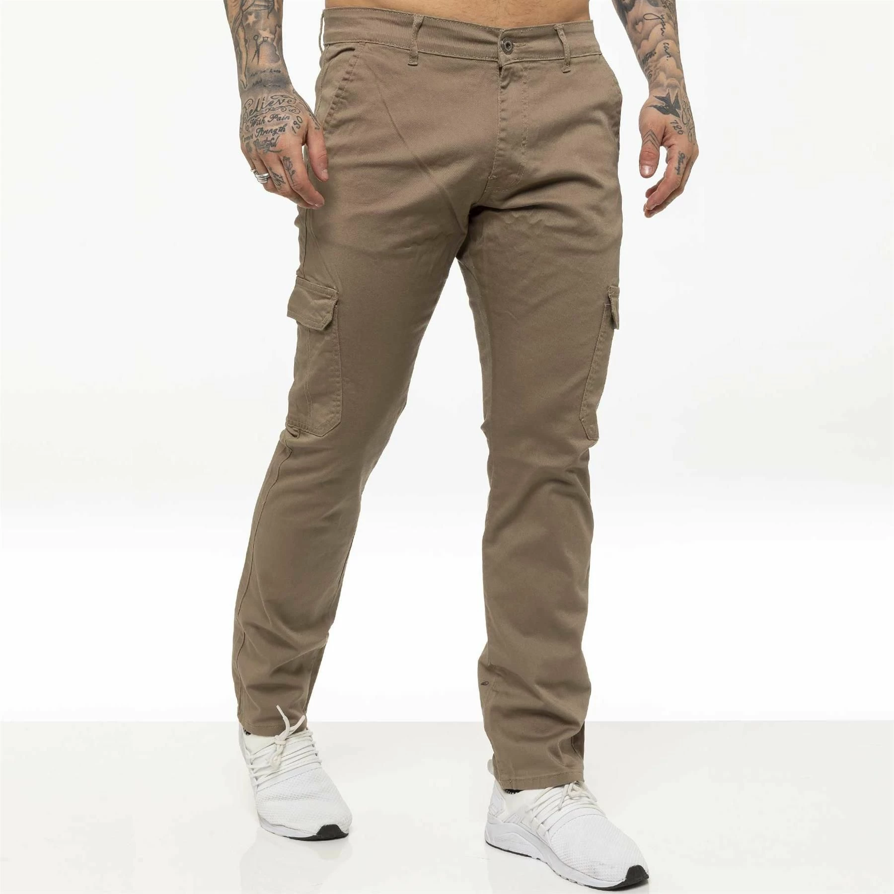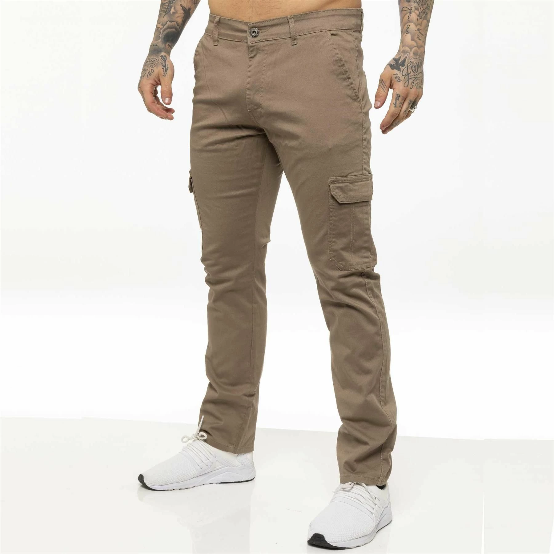 These EZ410 Enzo Mens Combat Chinos features 2 front pockets, 2 back pockets, 2 Velcro side pockets and a zip fly fastening. Crafted from 98% Cotton and 2% Lycra, these Slim Fit Chinos are available in Regular leg (32”) only