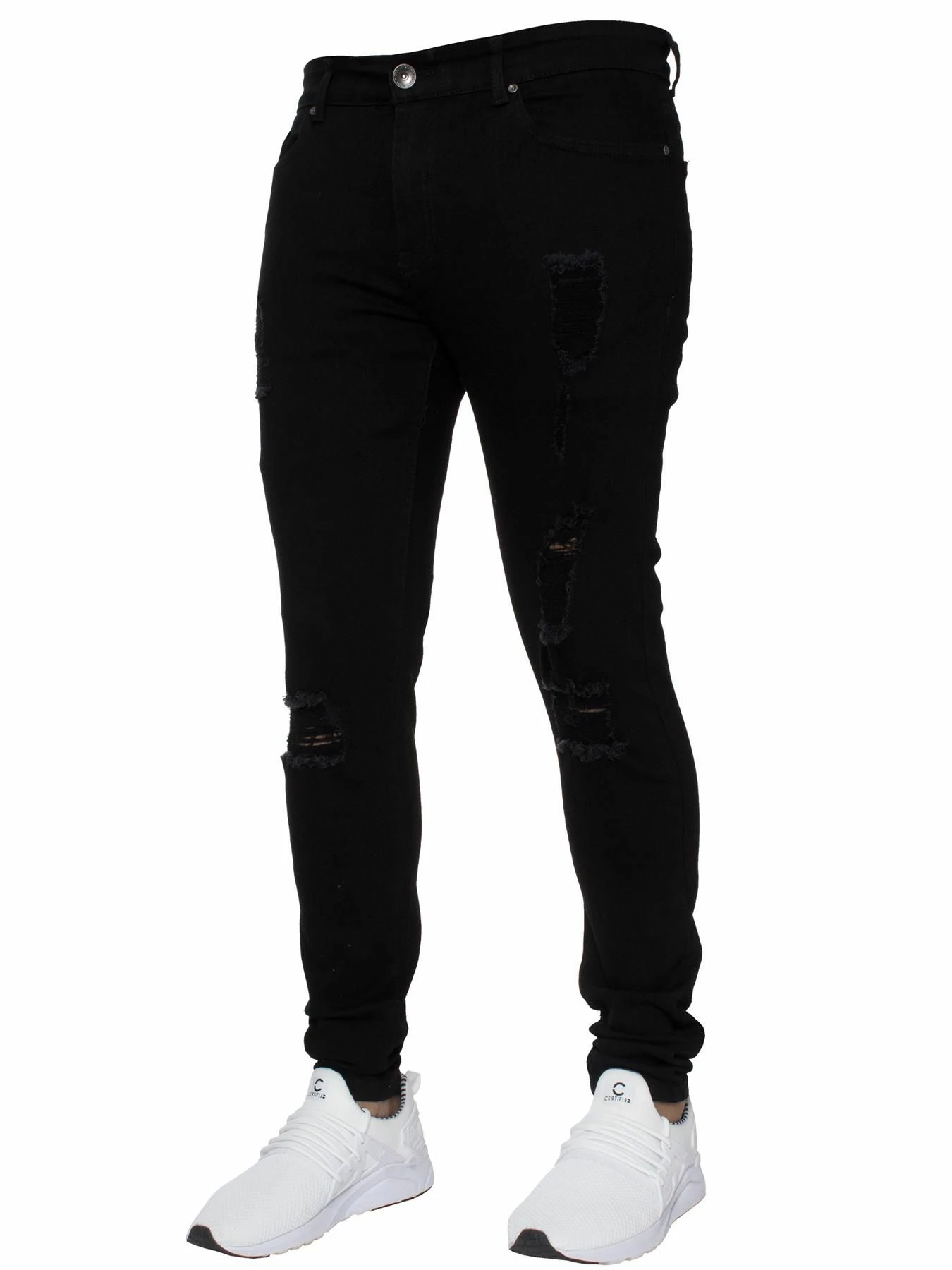 Enzo Mens Super Skinny Stretch Ripped Distressed Jeans With Zip Fly fastening. 2 Front, 2 Back pockets and 1-coin pocket, Branded buttons and rivets.