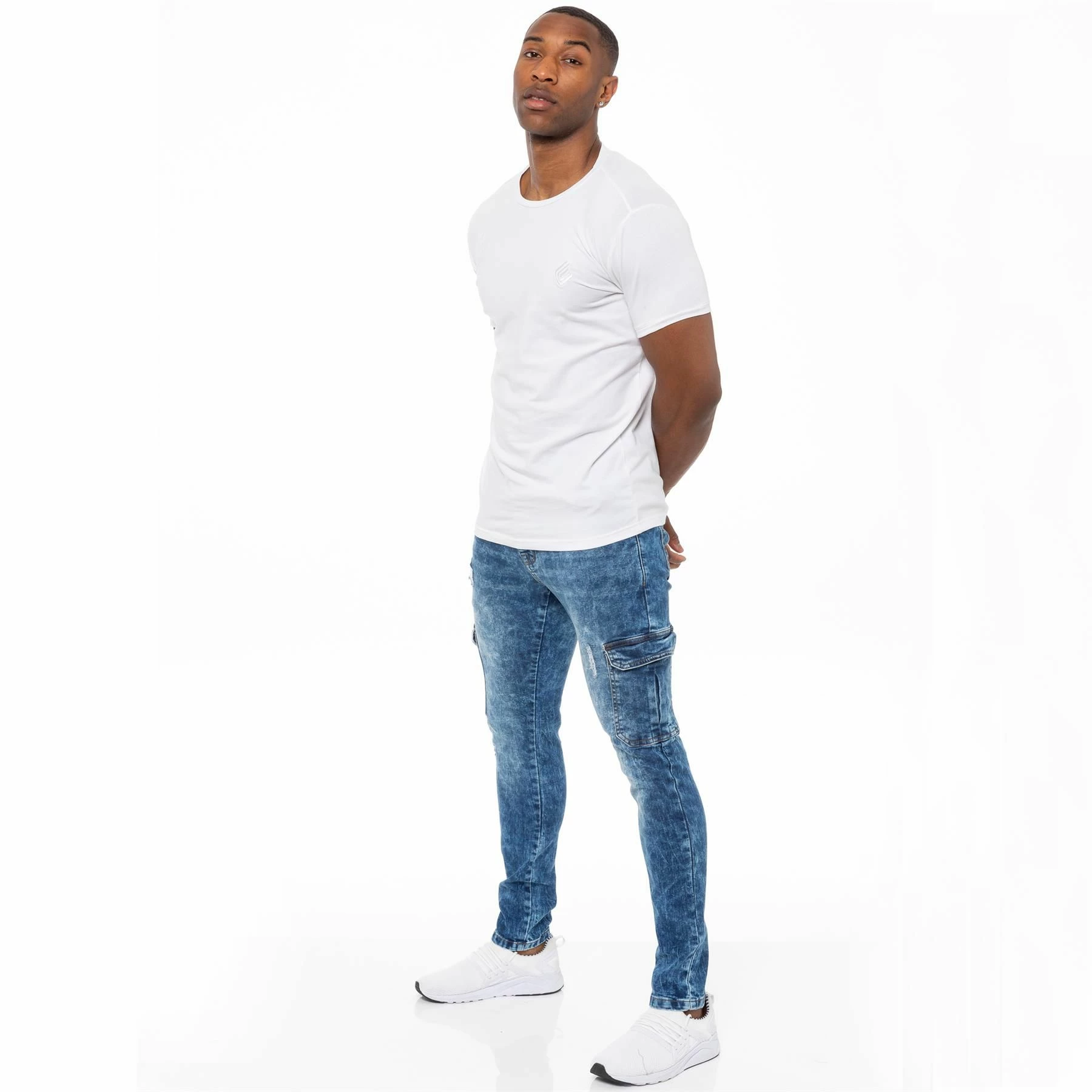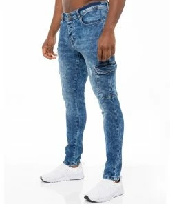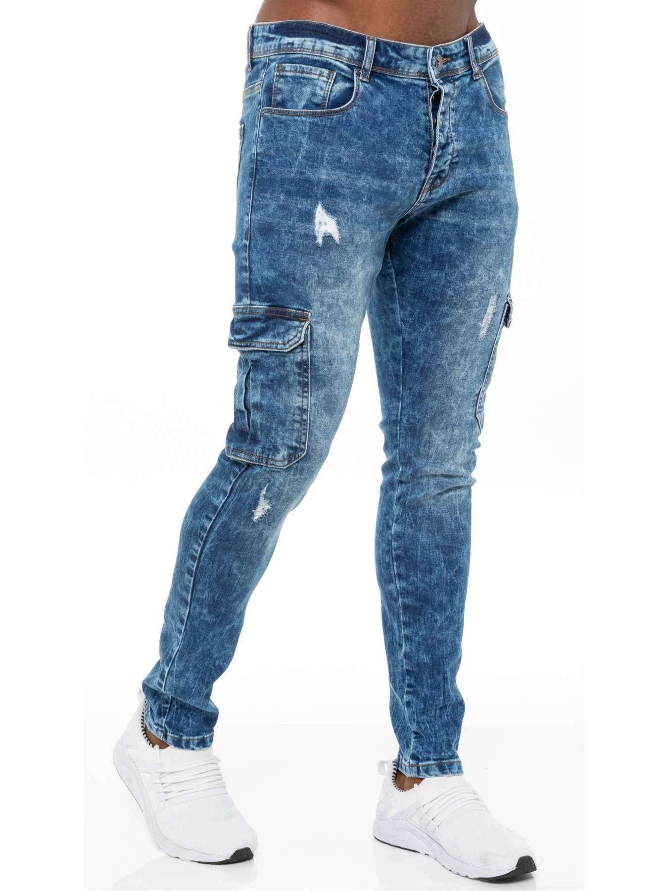 These Original EZ411 Ze Enzo Mens Skinny Stretch Fit Ripped Jeans features a button fly fastening, a 7 Pocket Design and branded buttons and rivets.
