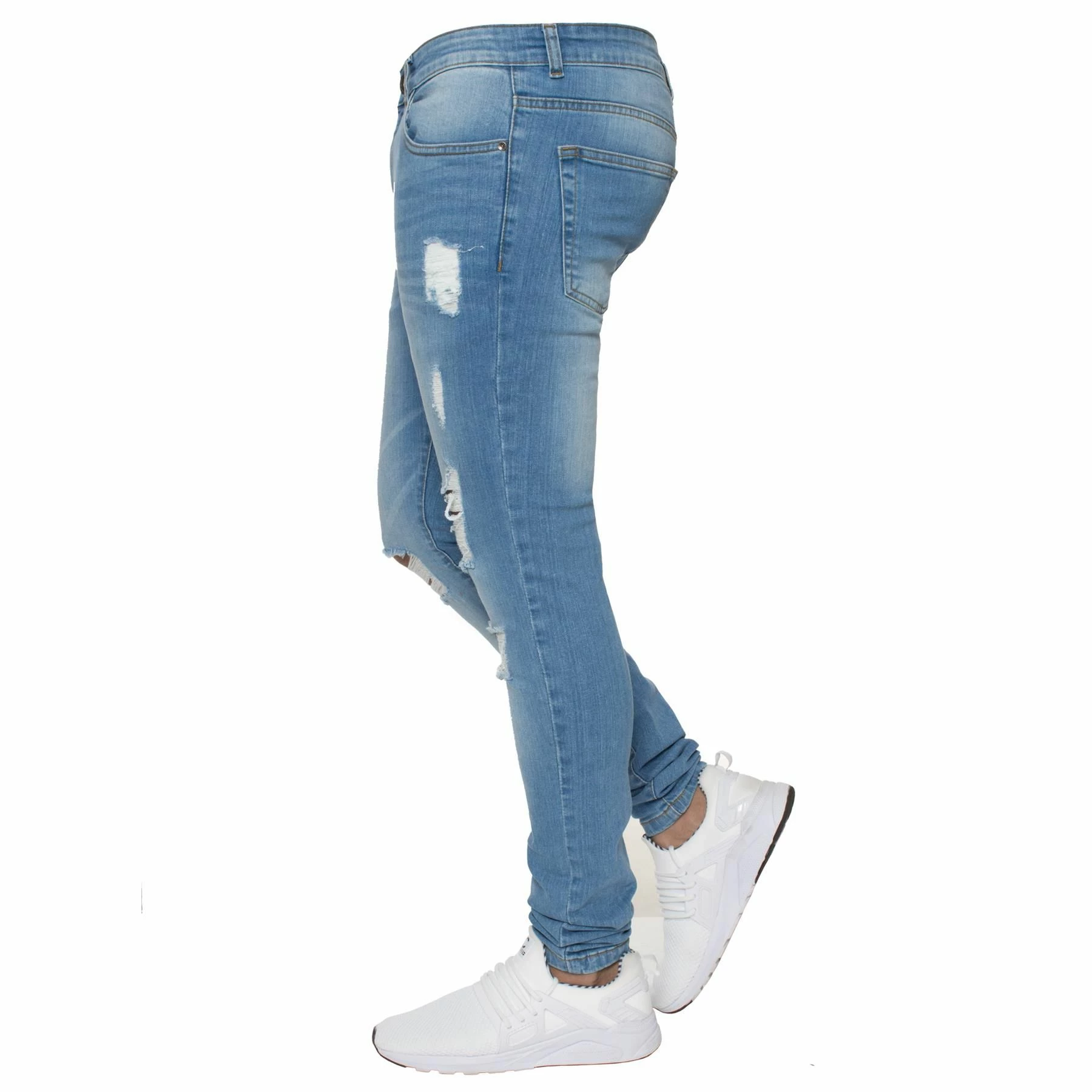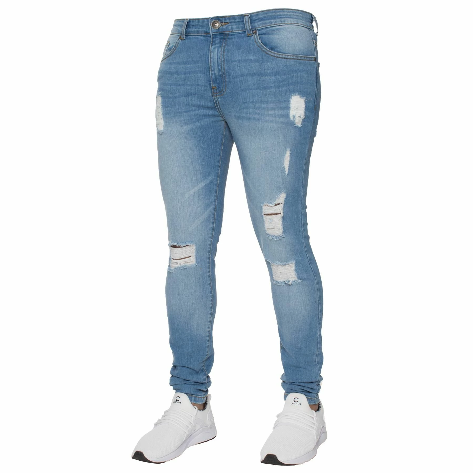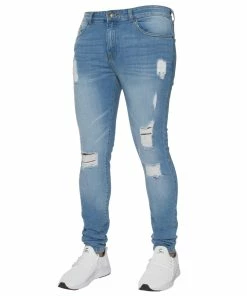 Enzo Mens Super Skinny Stretch Ripped Distressed Jeans With Zip Fly fastening. 2 Front, 2 Back pockets and 1-coin pocket, Branded buttons and rivets.