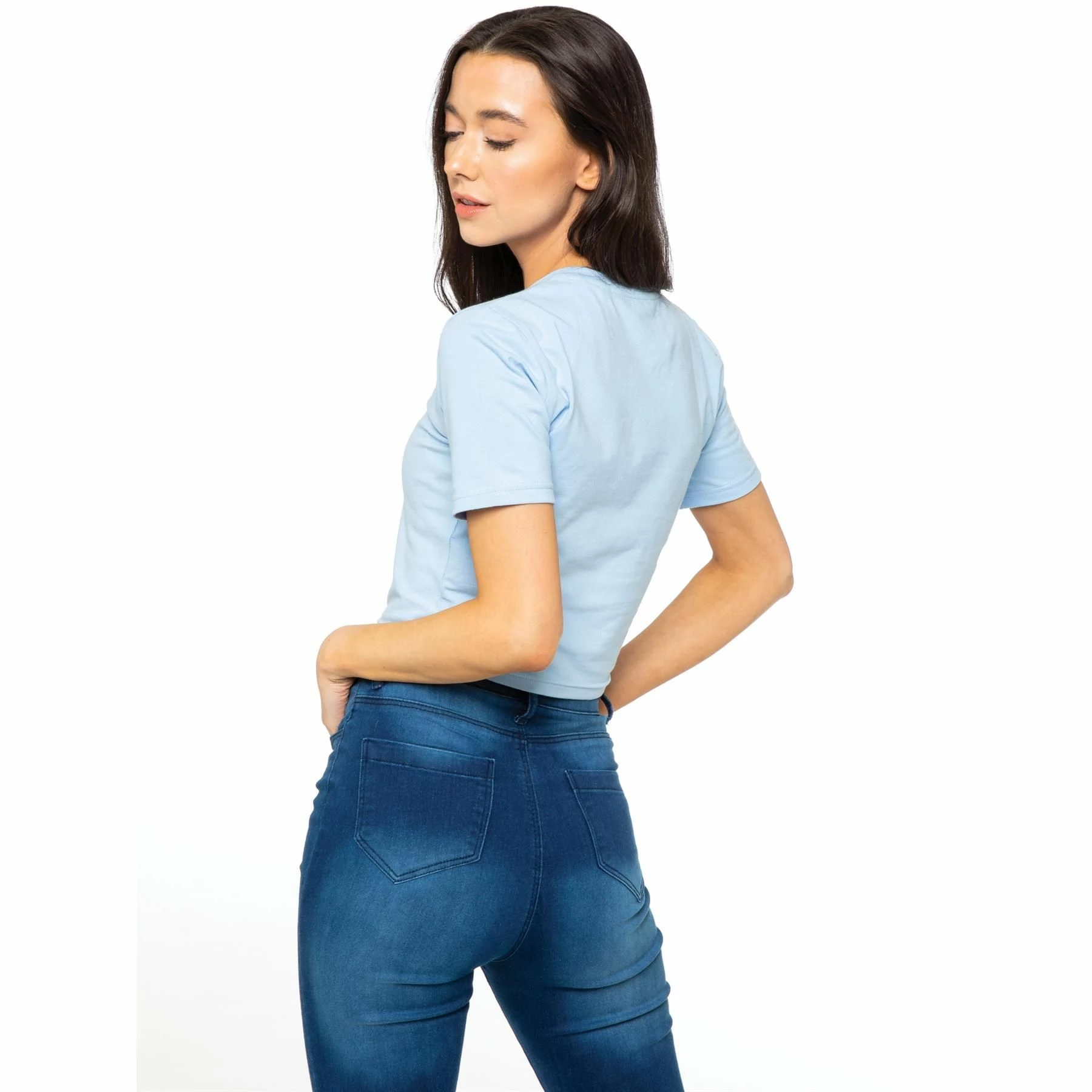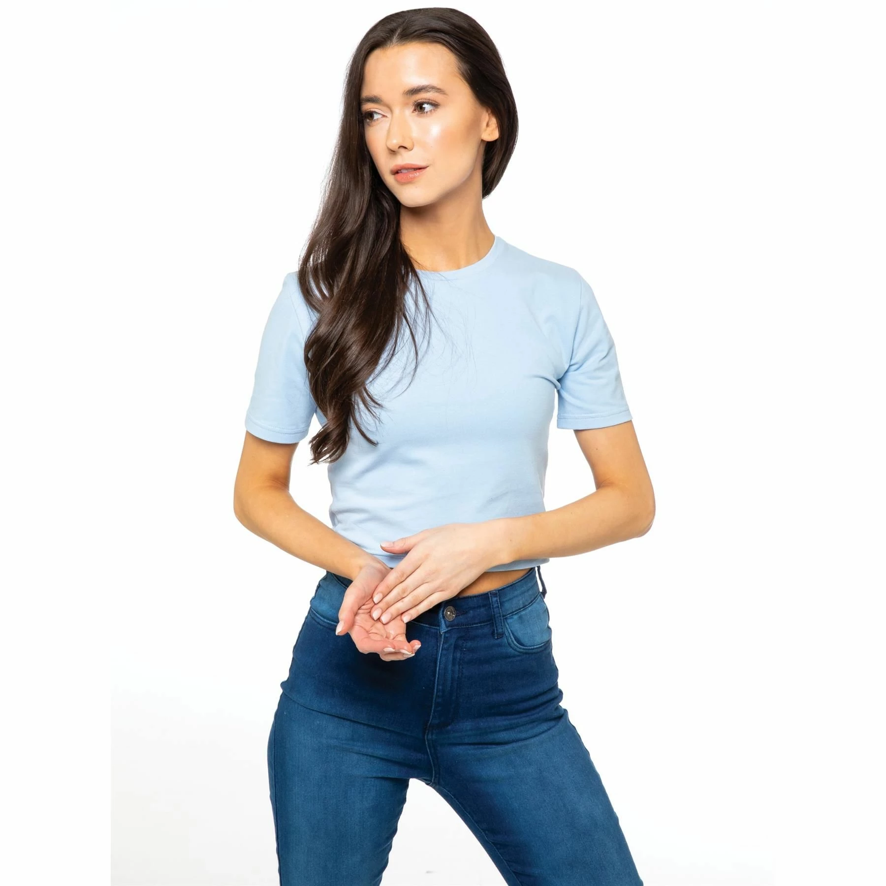 Enzo Women’s Crop Tops Feature a Crew Neckline and Short Sleeves. Crafted from Premium Stretch Fabric for Comfort and Fit .Ideal for Casual Wear.