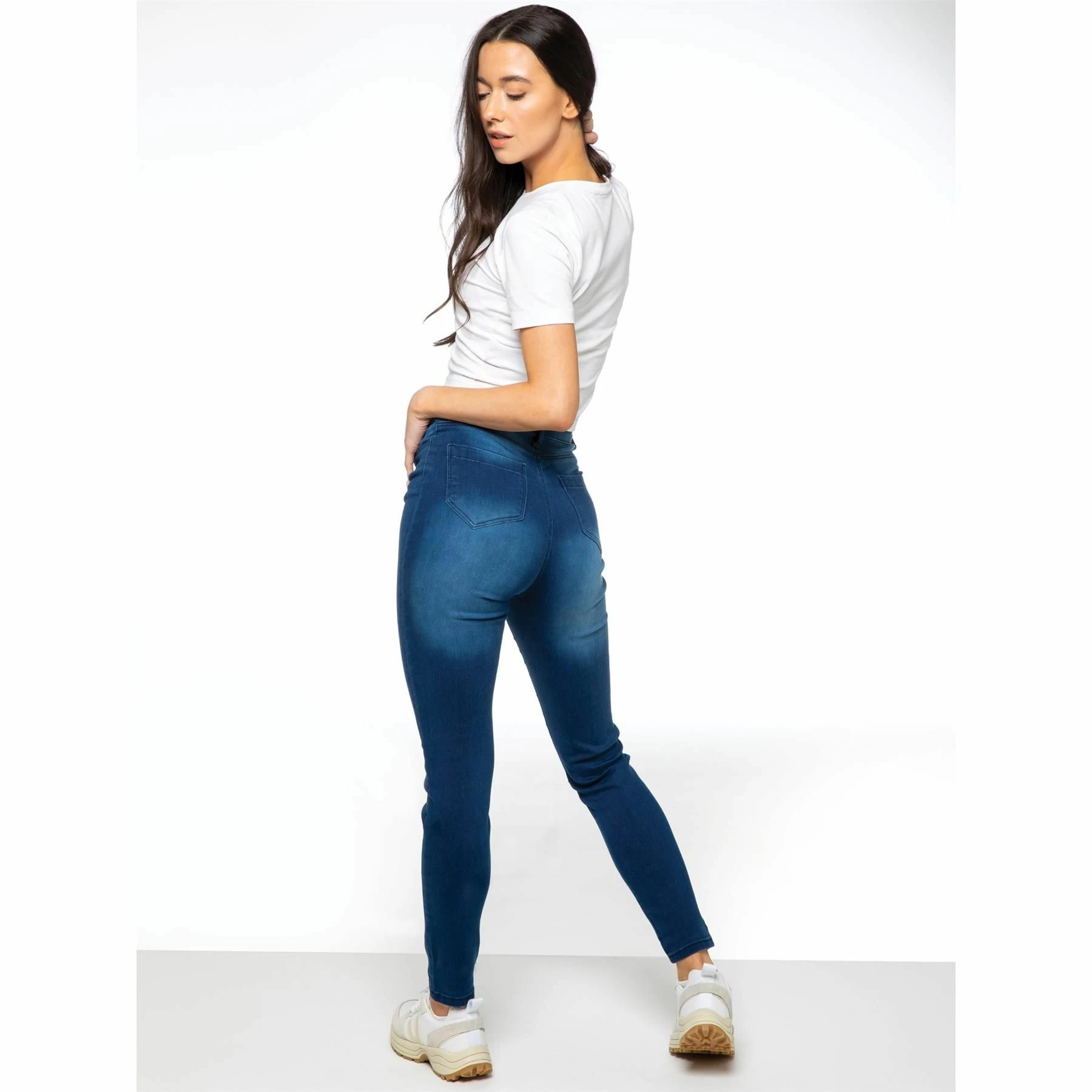 Enzo Womens Designer Skinny Stretch Jeans. Featuring 2 Back Pockets 2 Front Pockets And A Buttoned Waist. Flex Denim For The Perfect Fit. Ideal for Casual or Workwear