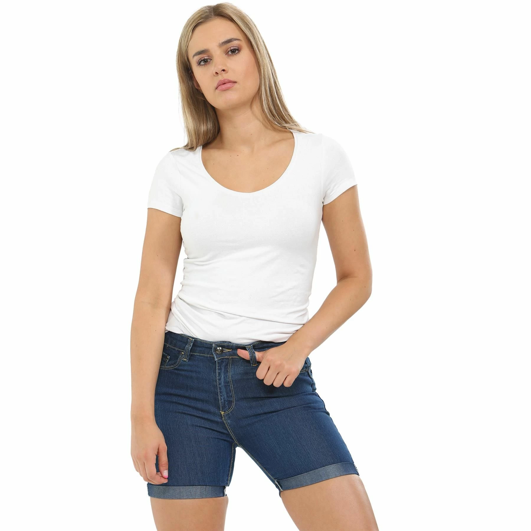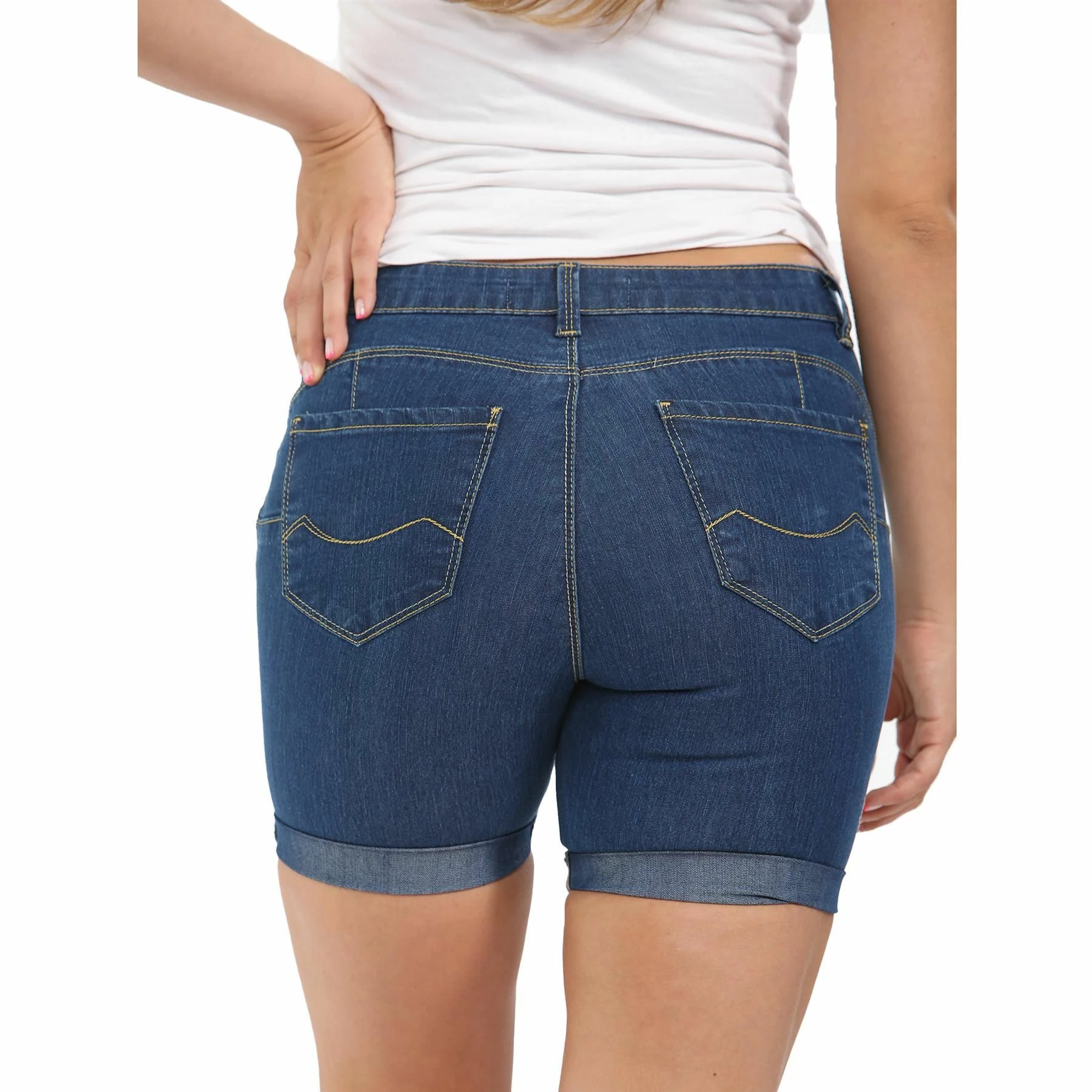 Enzo Womens Skinny Stretch Shorts Denim Jeans Half Pants, featuring 2 Front Pockets, 2 Back Pockets and 1 Coin Pocket, Zip Fly Fastening, Ideal for casual wear, Machine Washable, 83% Cotton, 15% Polyester, 2% Elastane