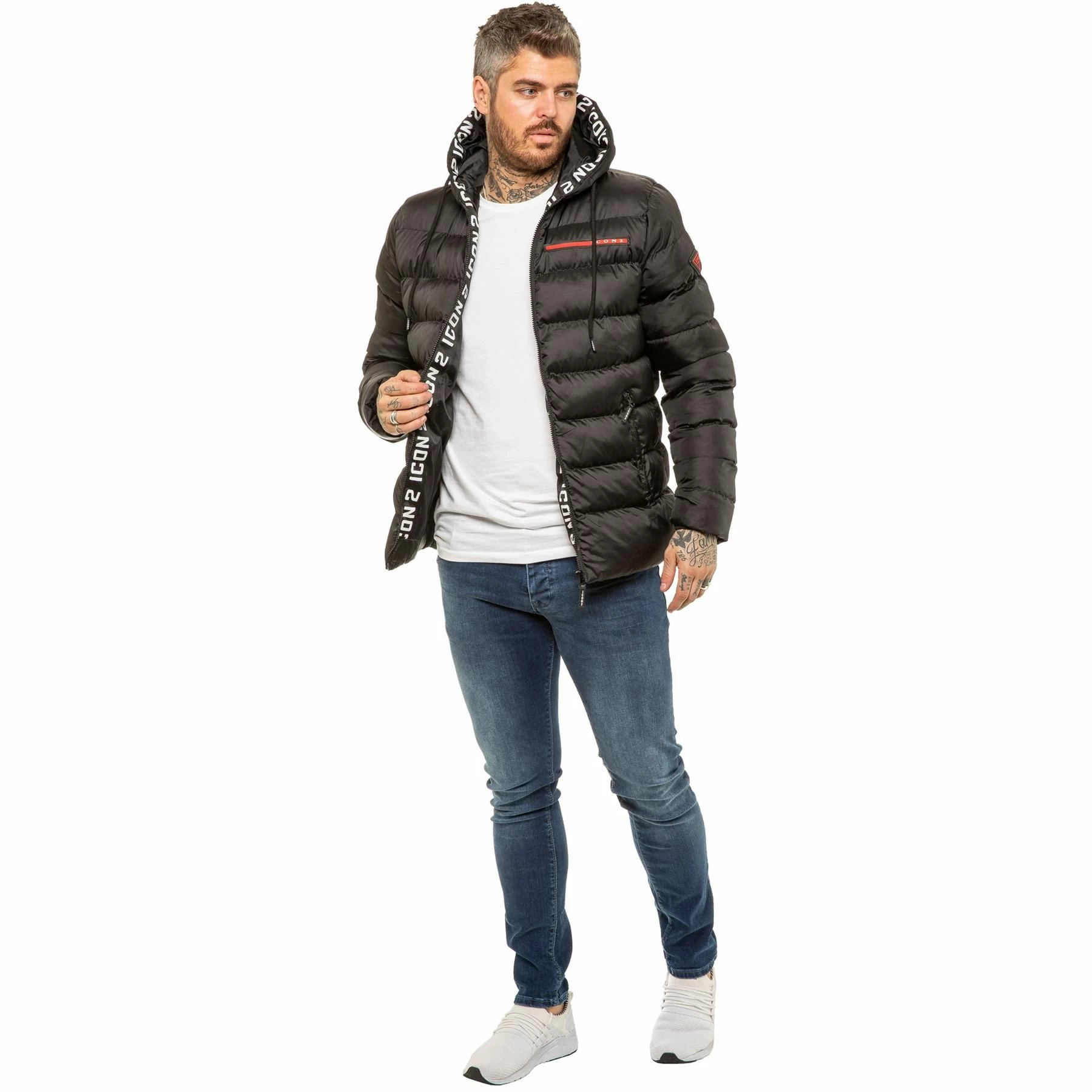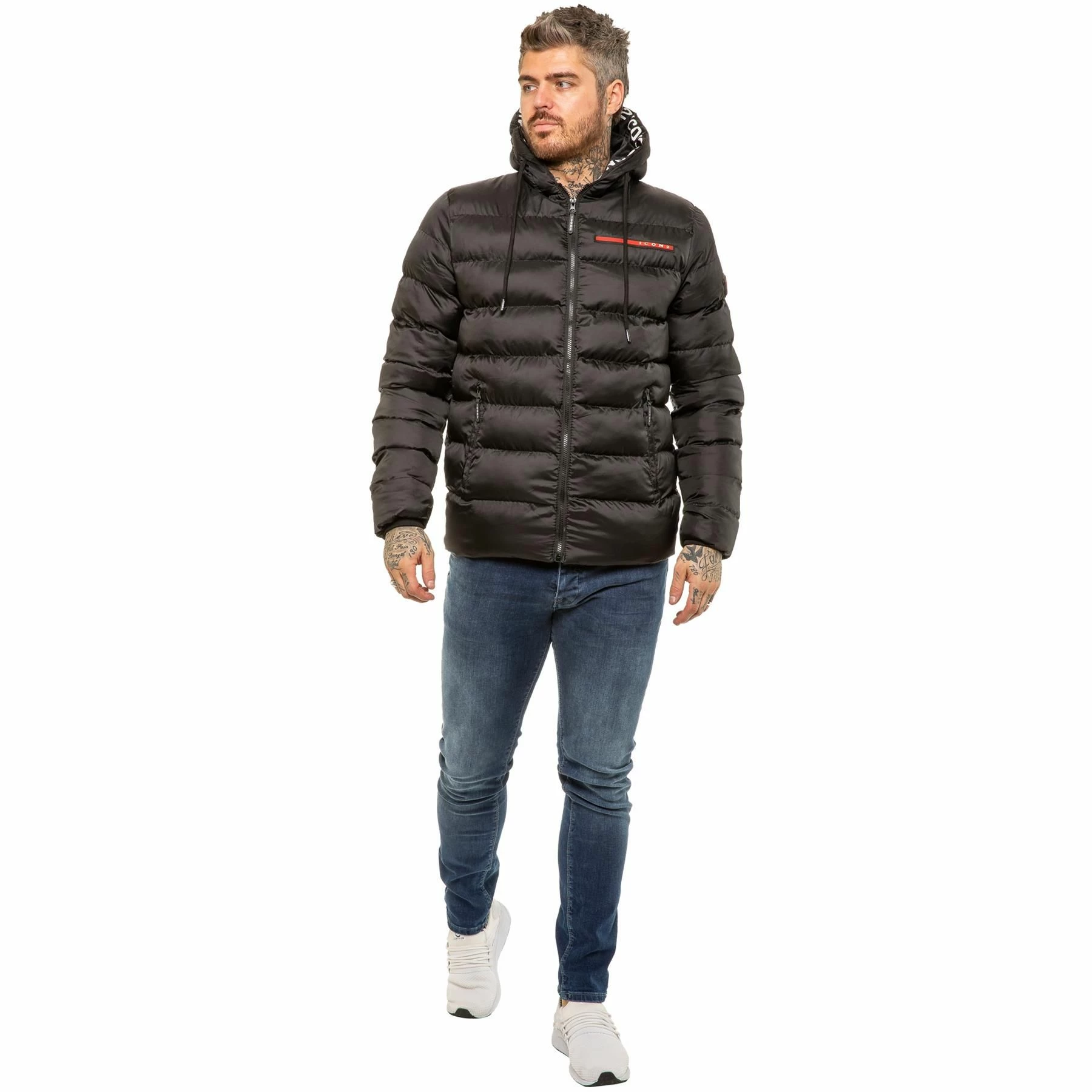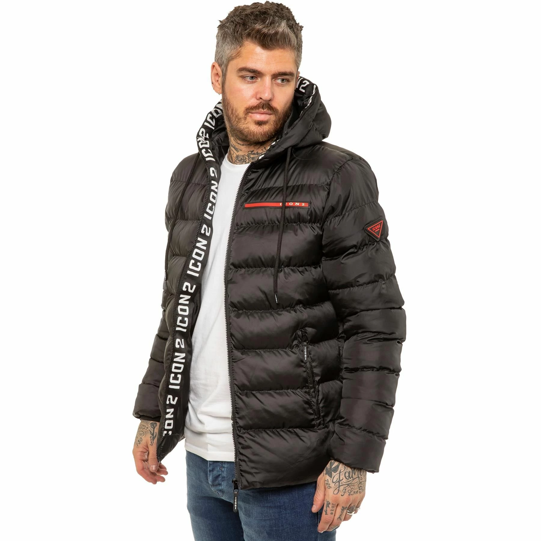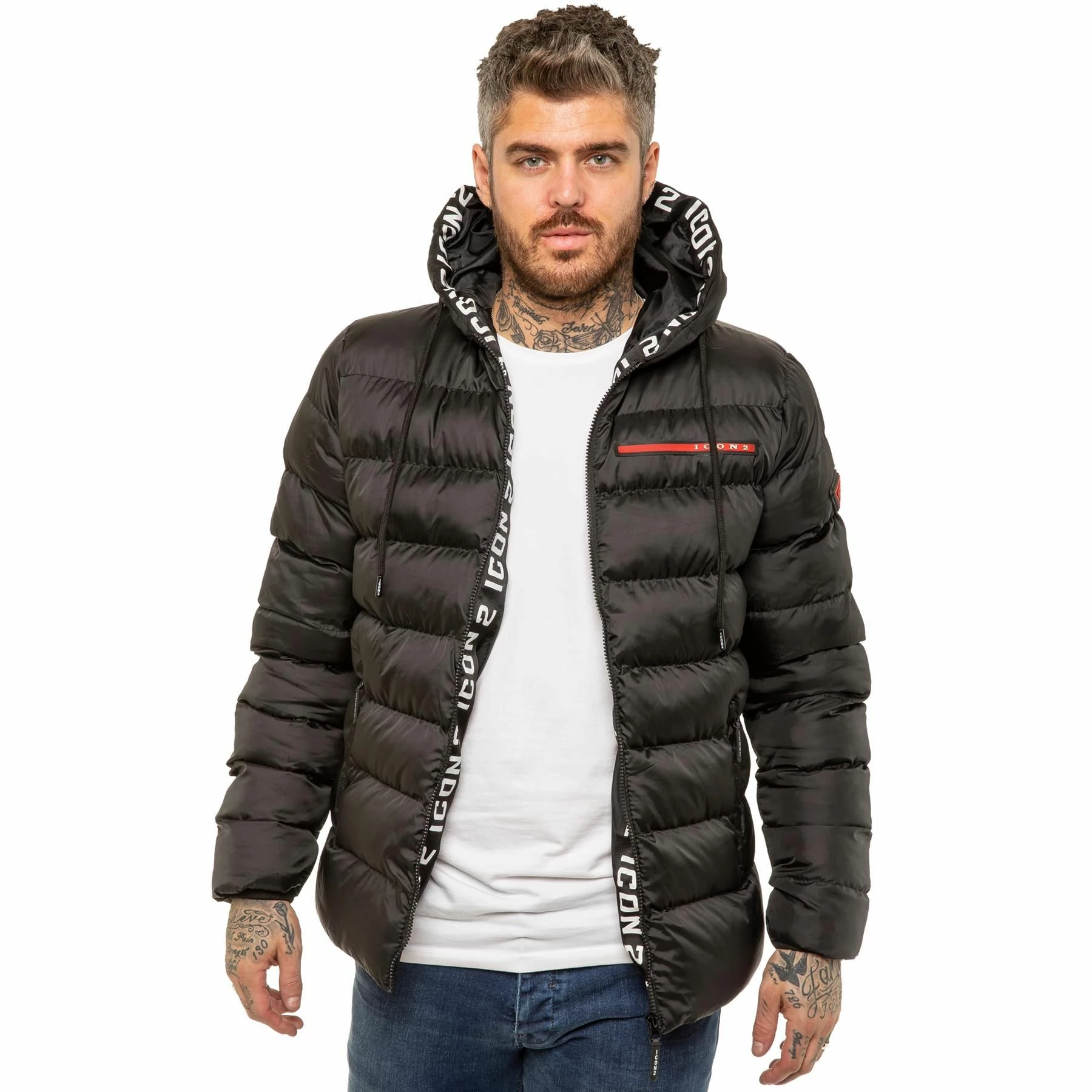 ICON 2 By Enzo Mens Zip Up Hooded Puffer Jacket With Full Zip Fastening, 2 Bottom Zip Up Pockets and Single Inner Pocket. Featuring Logo On the Front.