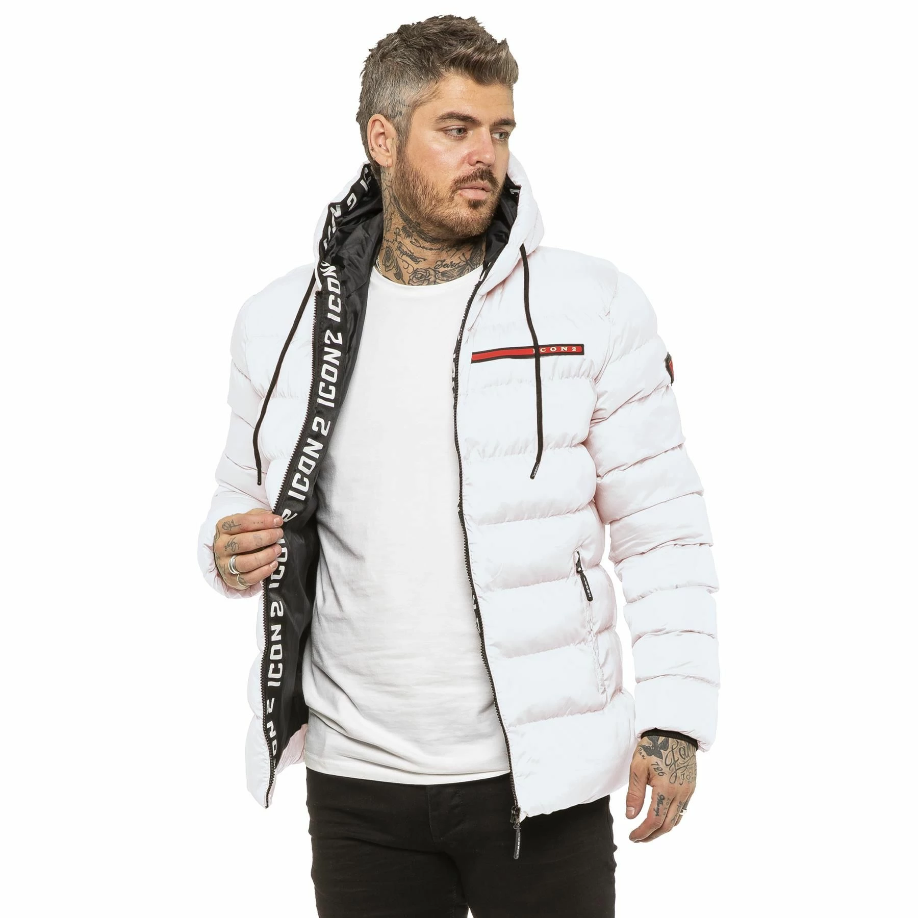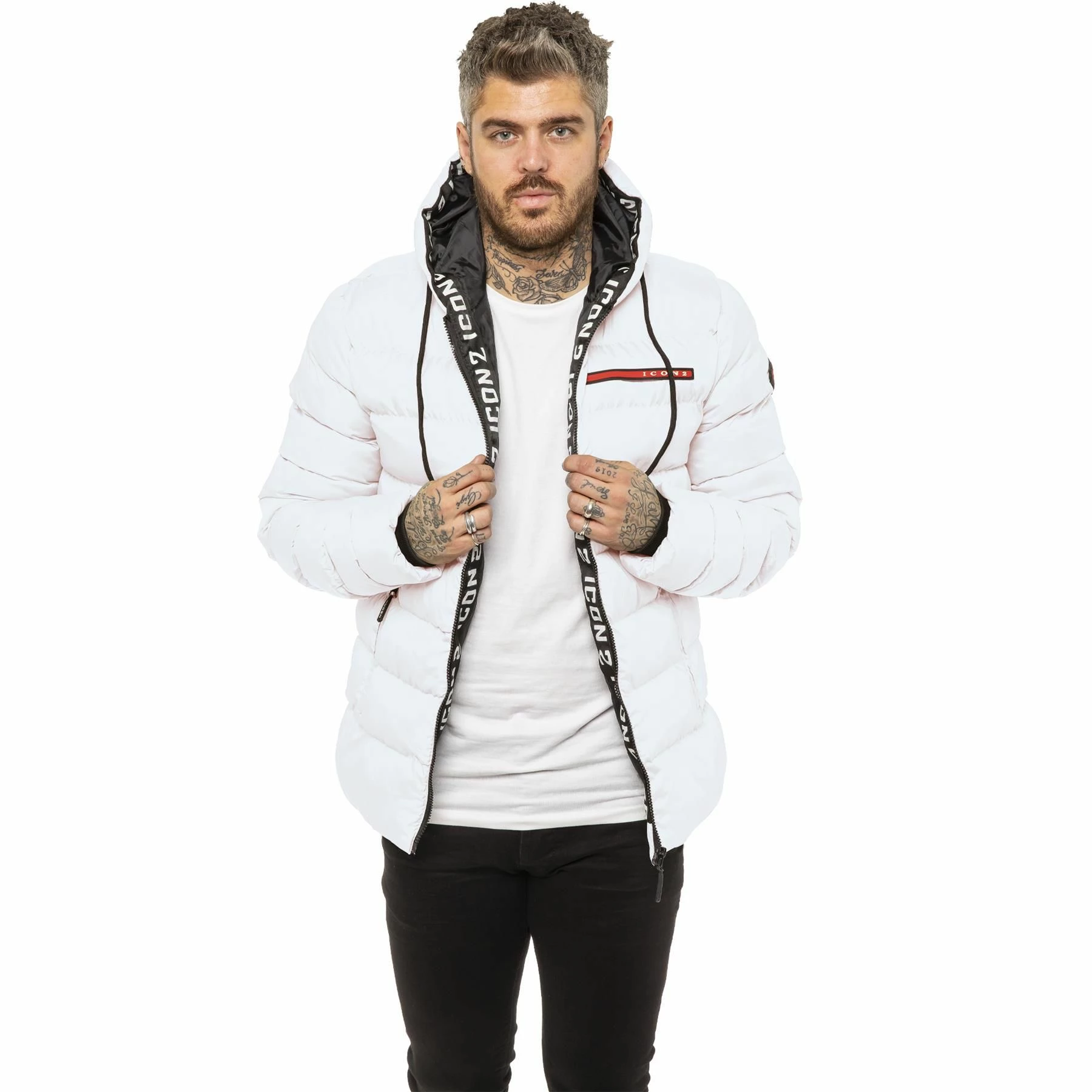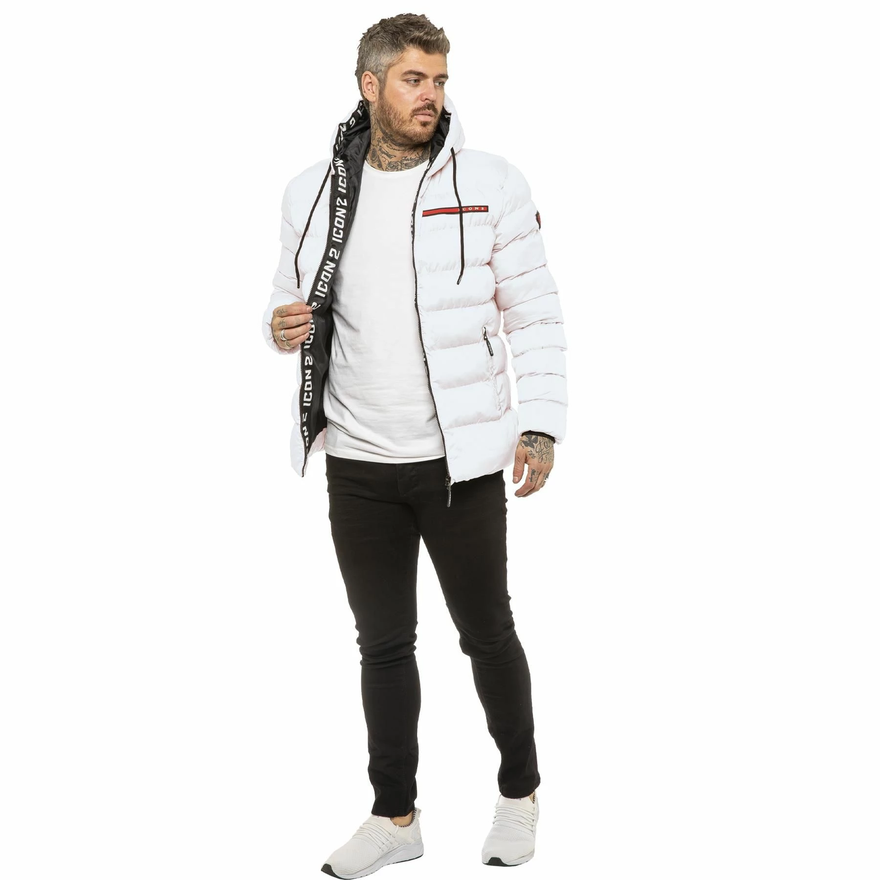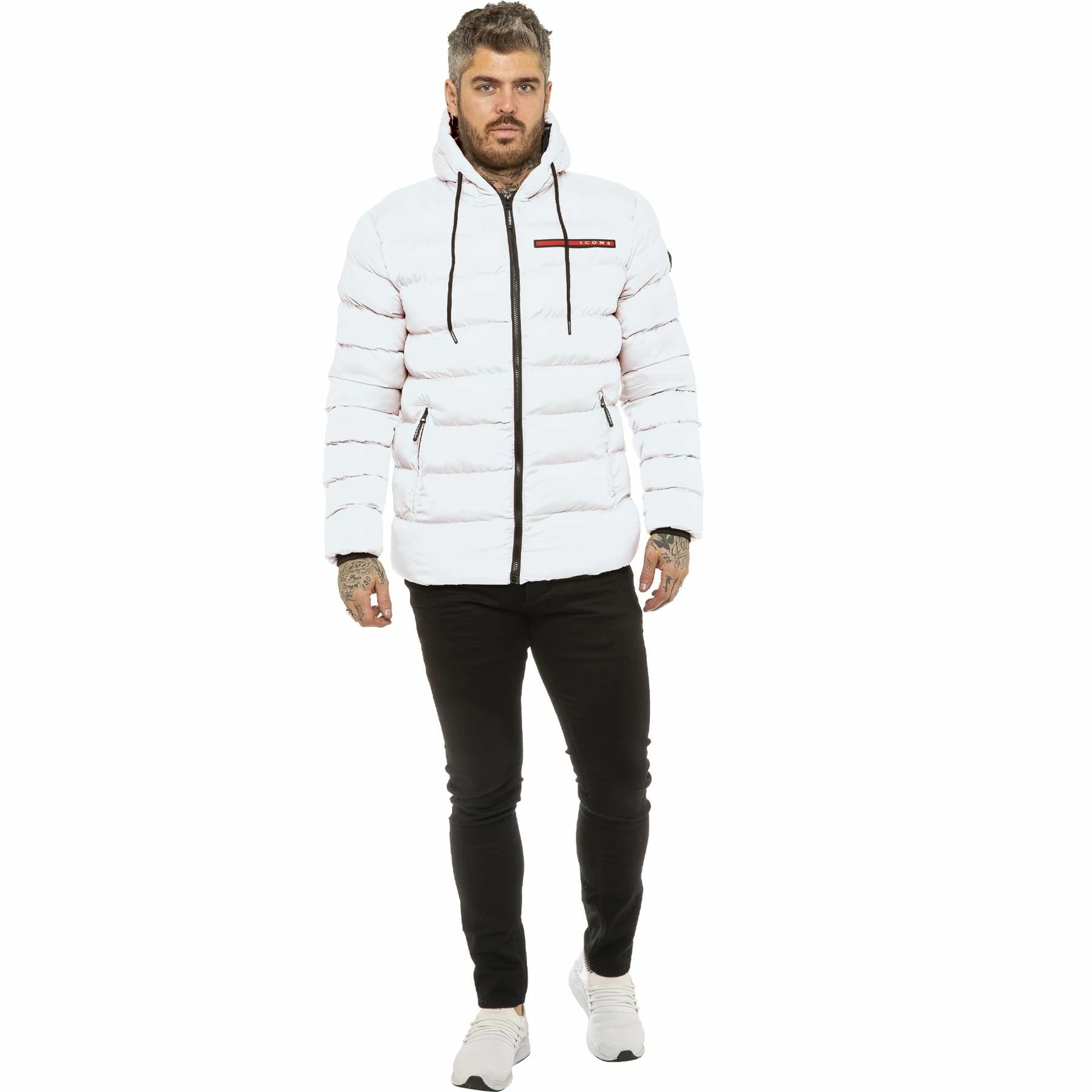 ICON 2 By Enzo Mens Zip Up Hooded Puffer Jacket With Full Zip Fastening, 2 Bottom Zip Up Pockets and Single Inner Pocket. Featuring Logo On the Front.