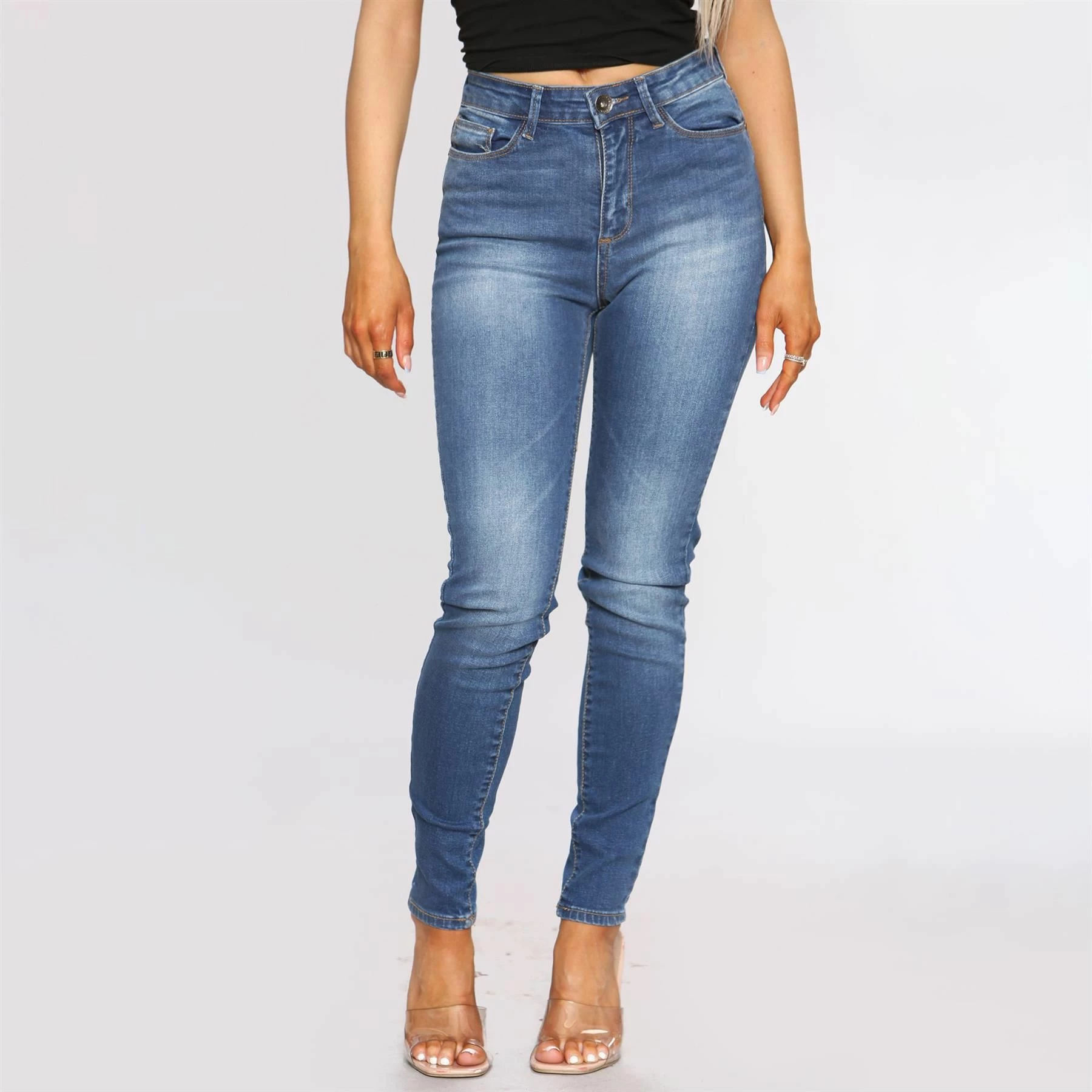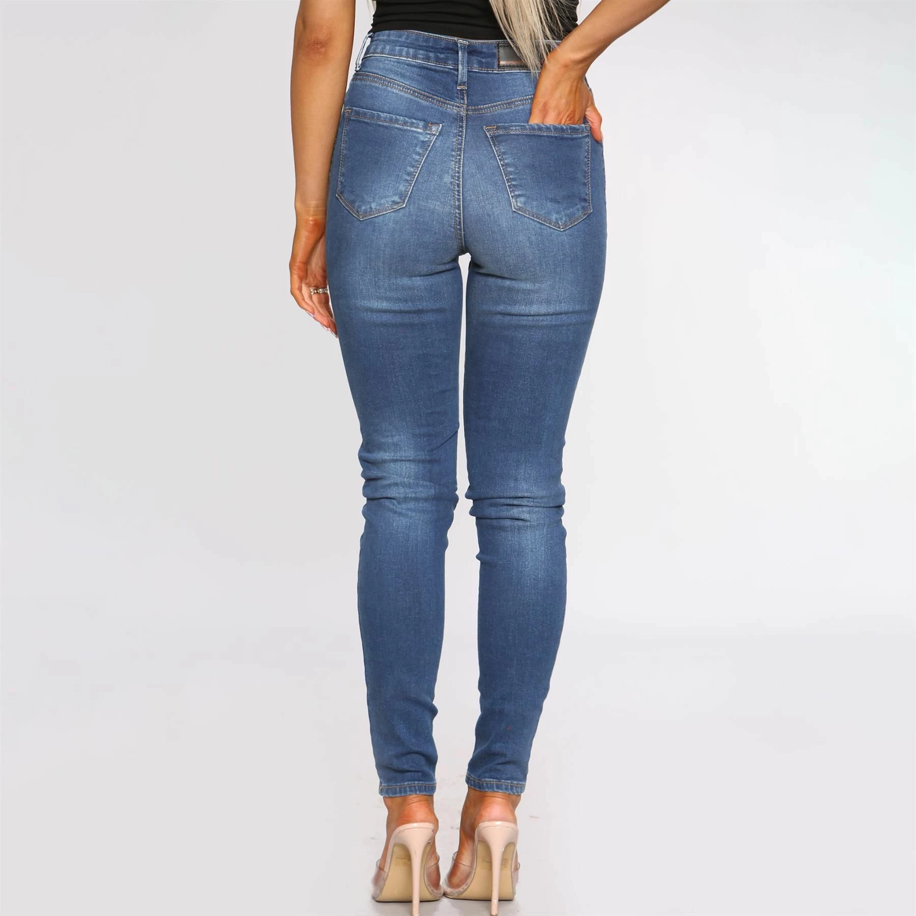 Enzo Womens Skinny Stretch Jeans, Slim Fitted Jeans With Faded Detail to Leg, Featuring 2 Front Pockets, 2 Back Pockets and 1 Coin Pocket, Zip Fly Fastening, 98% Cotton, 2% Elastane, Ideal for casual wear