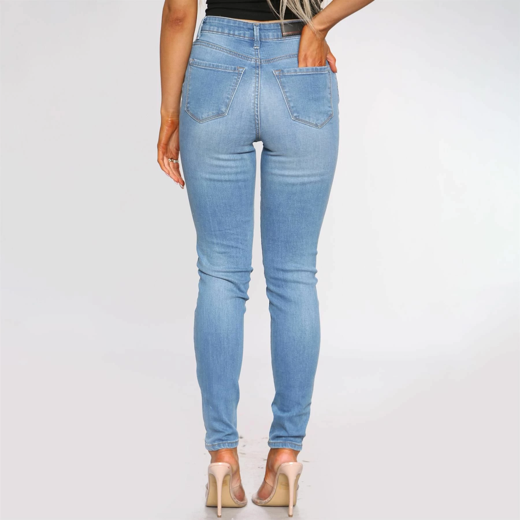 Enzo Womens Skinny Stretch Jeans, Slim Fitted Jeans With Faded Detail to Leg, Featuring 2 Front Pockets, 2 Back Pockets and 1 Coin Pocket, Zip Fly Fastening, 98% Cotton, 2% Elastane, Ideal for casual wear