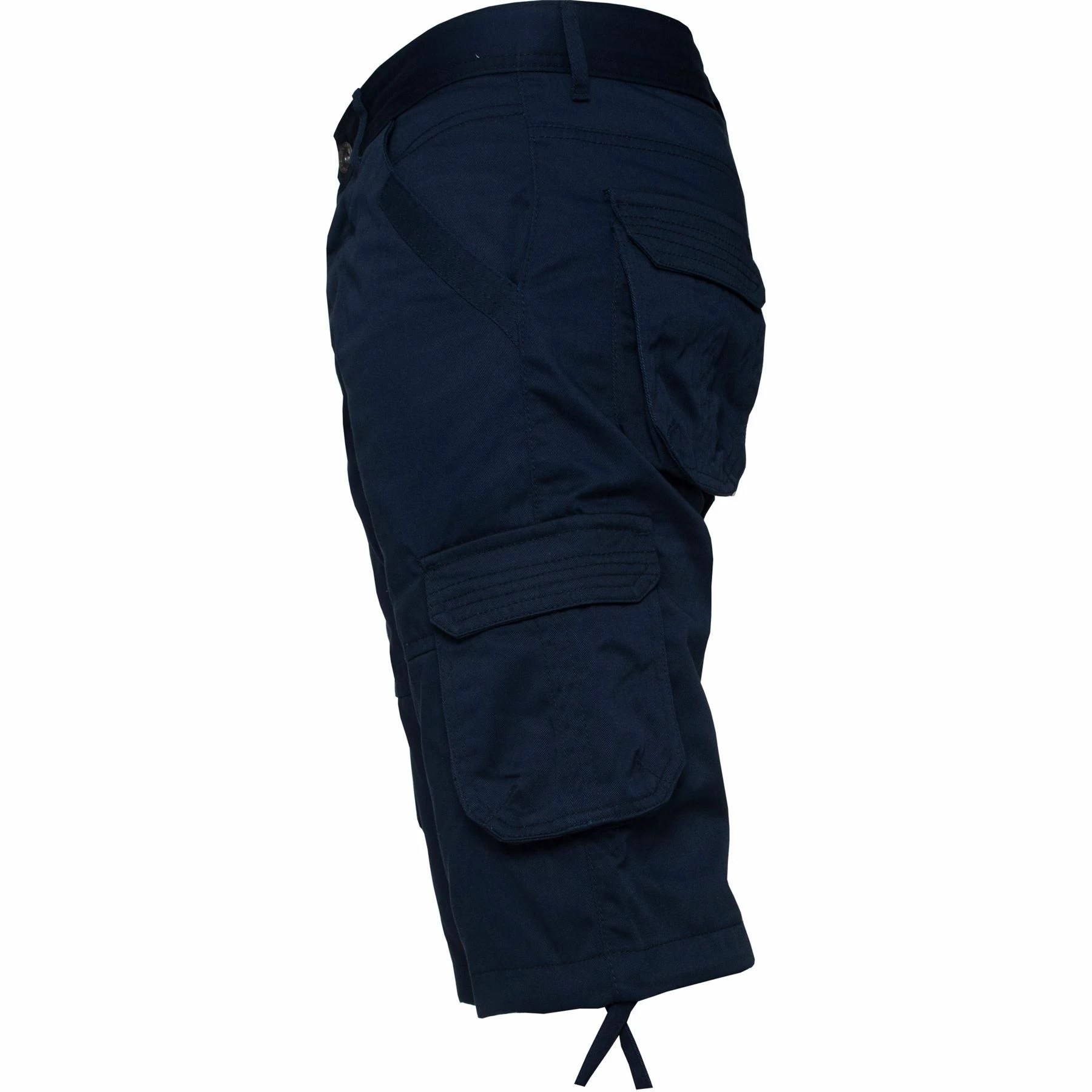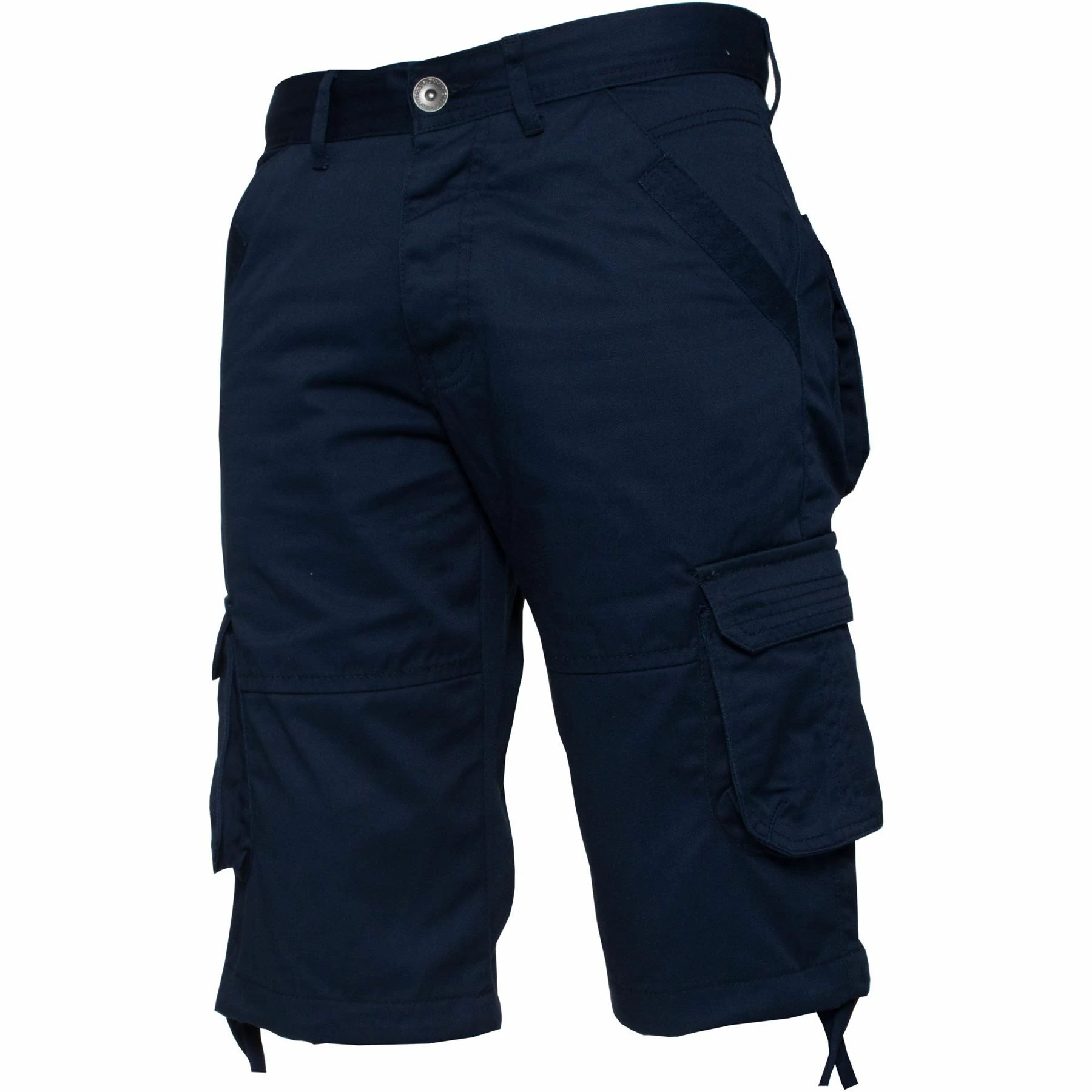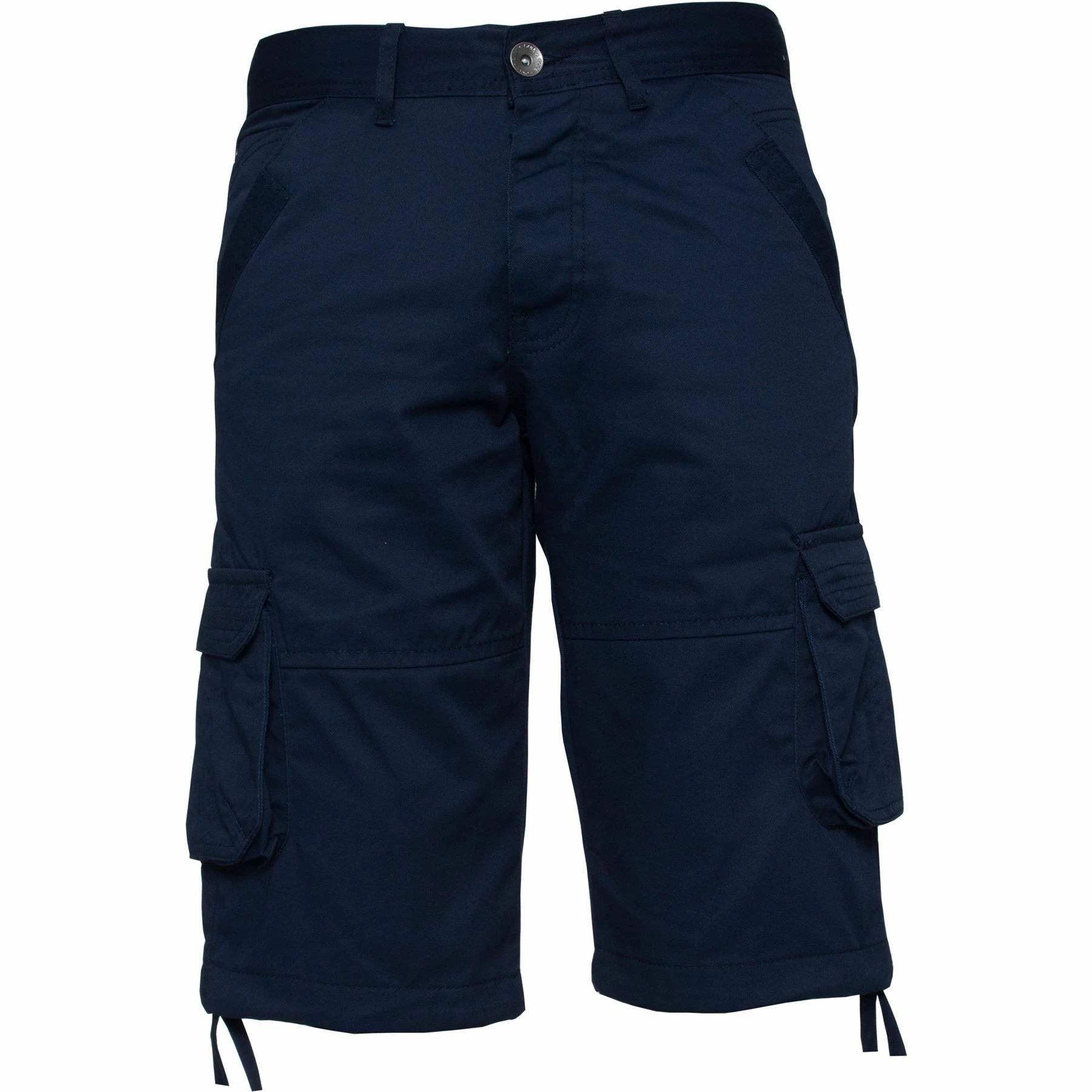 Enzo Mens Designer Cargo Combat Shorts, in Navy, 65% Polyester, 35% Cotton, 7 Pocket Design, Single Coin Pocket, 2 Front Pockets with Extra Fabric Stitching Detail, 2 Side, 2 Back Bellow Pockets with Velcro Fastening, Adjustable Drawstring to the Hems, Mid Rise, Button Fly Fastening, Machine washable, Ideal for Casual and Heavy Duty Work Wear Occasions