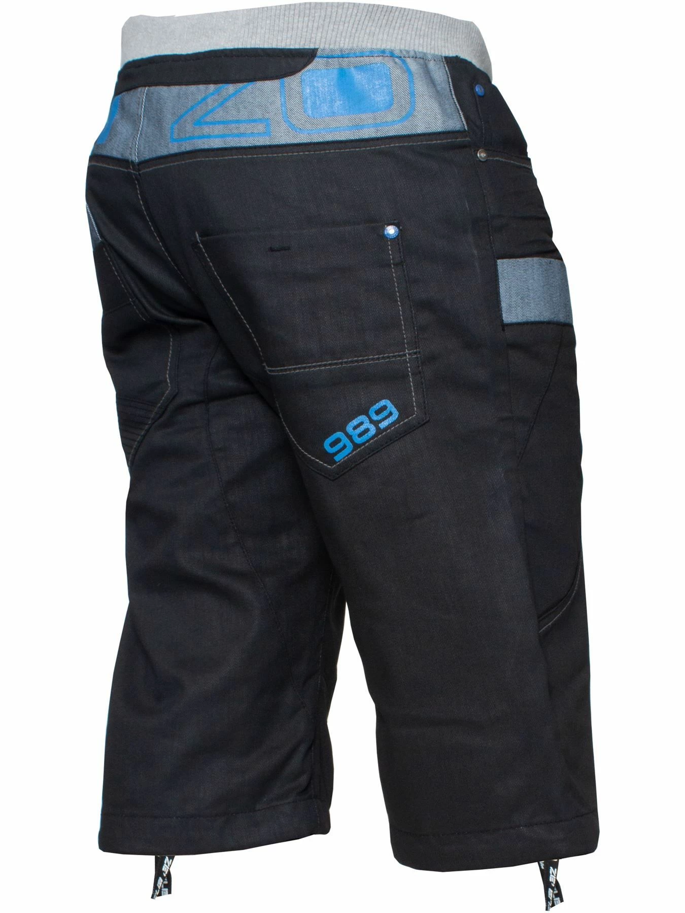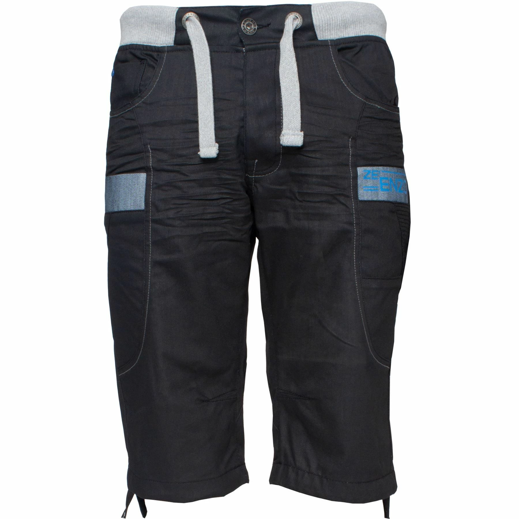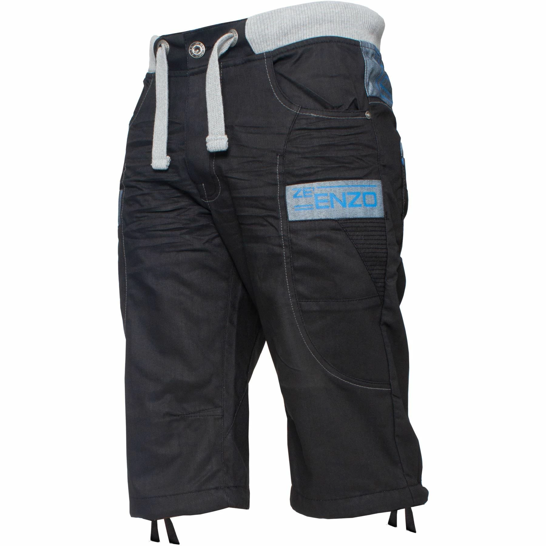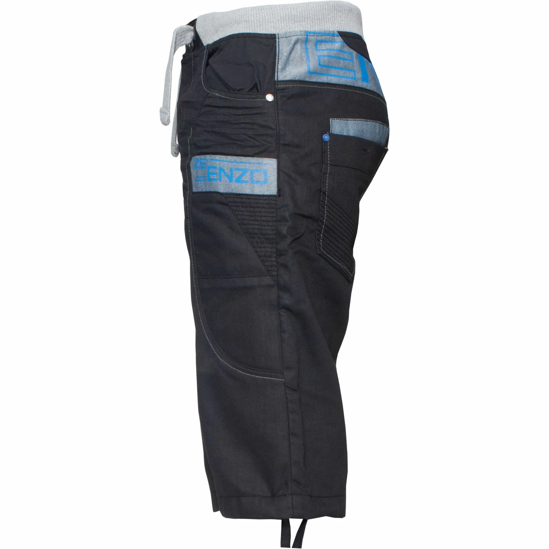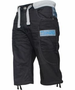 Enzo Designer Mens Elasticated Waist Denim Shorts in Black, 70% Cotton, 30% Polyester, Elasticated Rib Waistband with Drawstrings, 6 Pockets Including Coin Pocket, Branded Buttons and Rivets, Button Fly Fastening, Cut and Sew Design, Contrast Stitching, Print Details on Back Yoke & Front Pocket, Adjustable Drawstrings with print details to Hems, Machine washable, Ideal for Casual and Work Wear Occasions