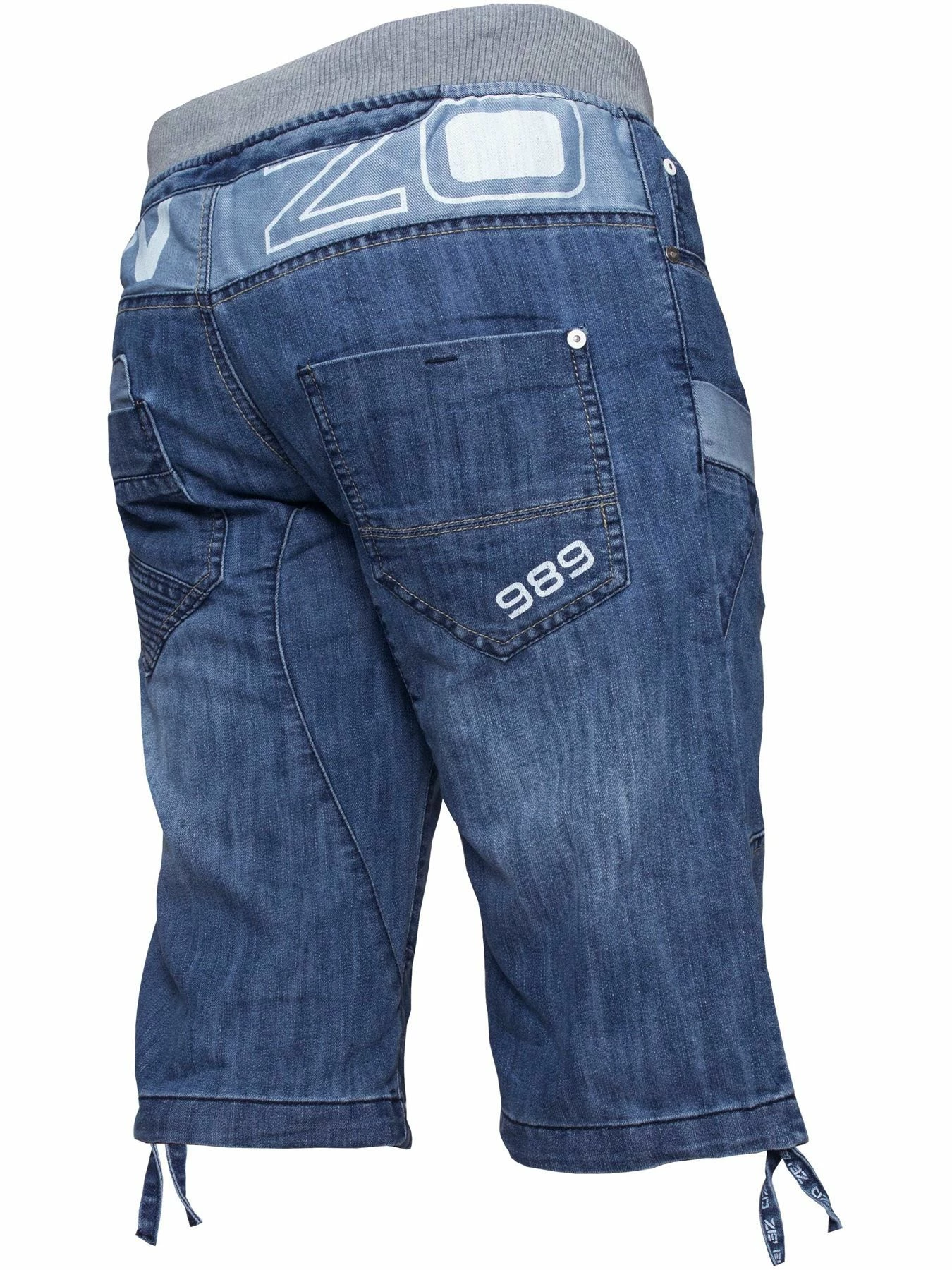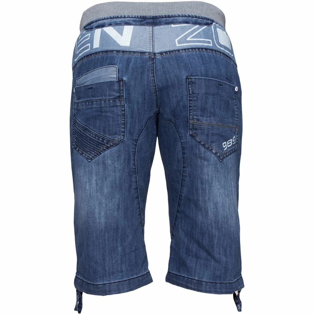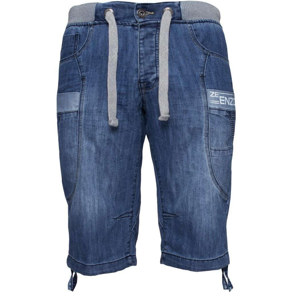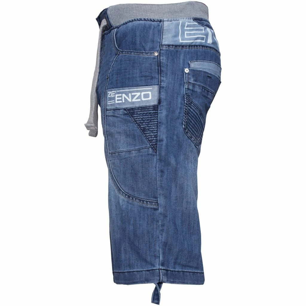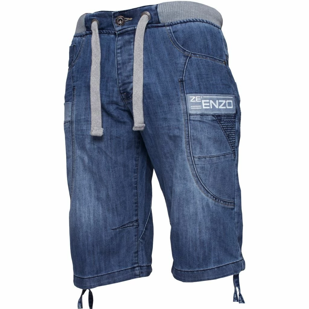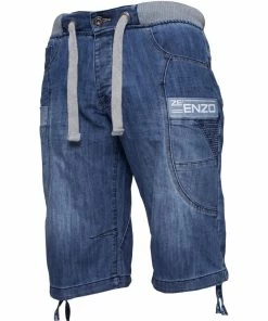 Enzo Designer Mens Elasticated Waist Denim Shorts in Blue, 70% Cotton, 30% Polyester, Elasticated Rib Waistband with Drawstrings, 6 Pockets Including Coin Pocket, Branded Buttons and Rivets, Button Fly Fastening, Cut and Sew Design, Contrast Stitching, Print Details on Back Yoke & Front Pocket, Adjustable Drawstrings with print details to Hems, Machine washable, Ideal for Casual and Work Wear Occasions