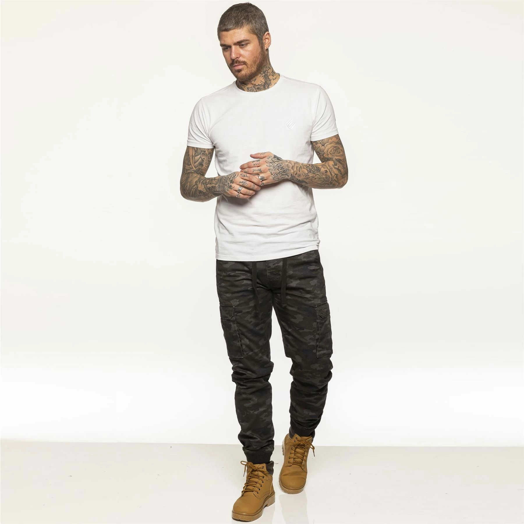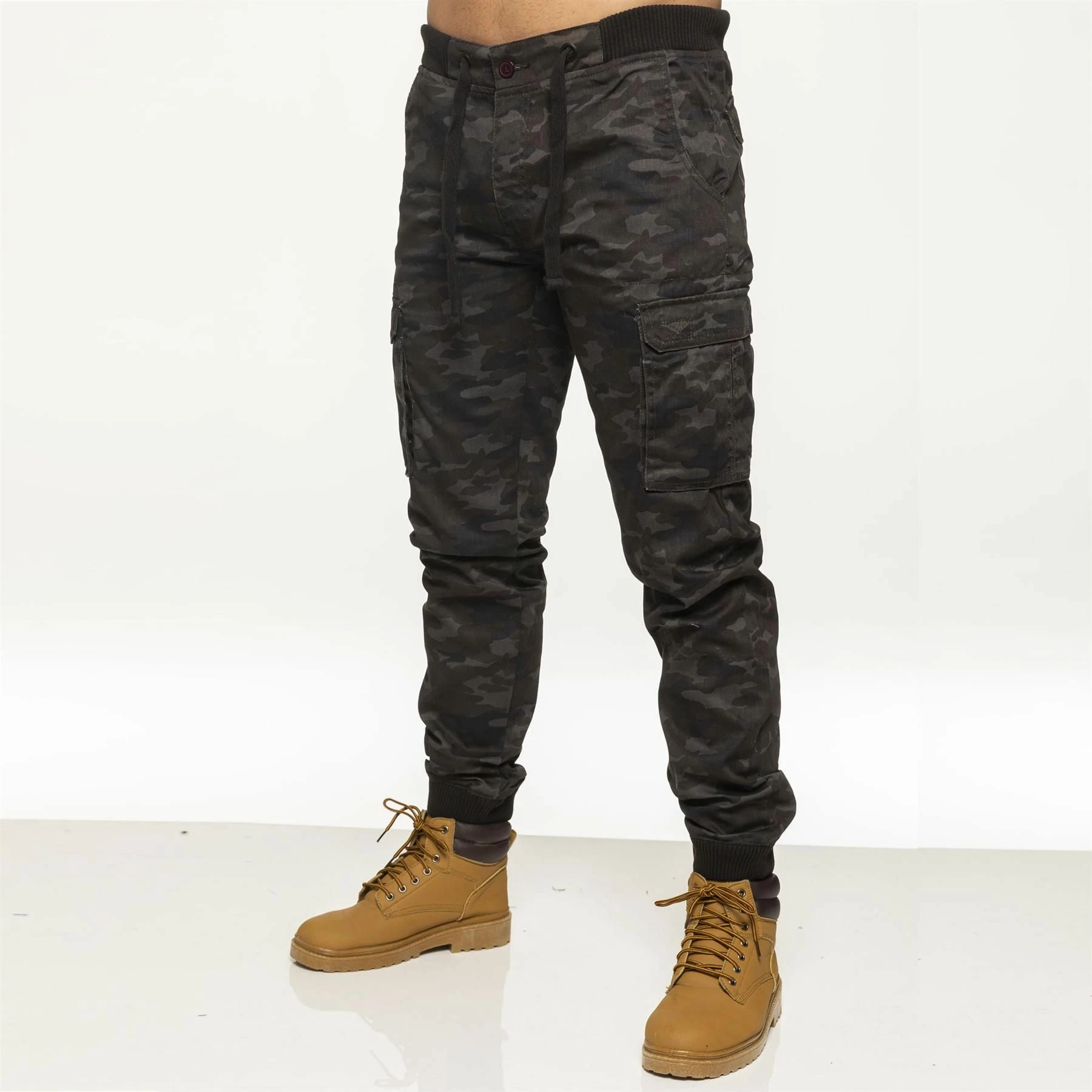 Enzo Men’s Camo Combat Cuffed Jogger Style Trousers in Dark Grey, 65% Polyester, 35% Cotton, Elasticated Waist with Drawcord and Secured by Button, Mid Rise, Elasticated Ribbed Waist and Cuffs, 2 Front Pockets, 2 Buttoned Back Pockets and 2 Velcro Side Pockets, Zip Fly Fastening, Machine washable, Suitable For All Year Round Wear And Casual Occasions.