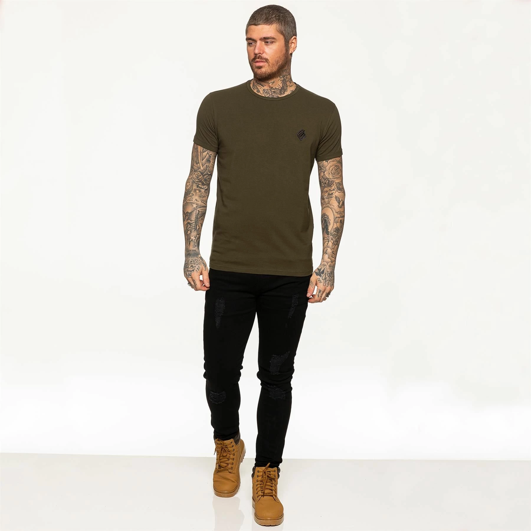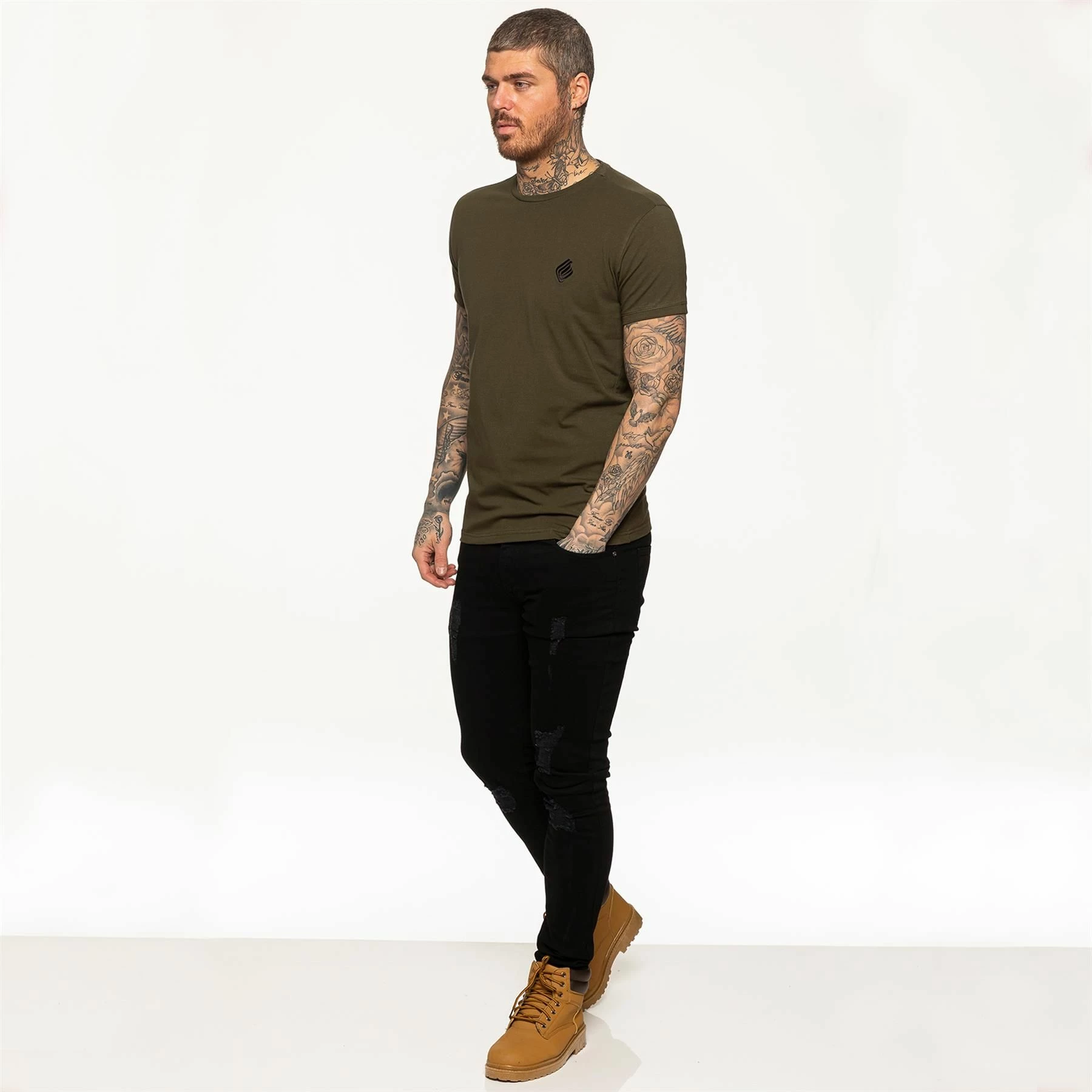 Enzo Men’s Green Designer Athletic Muscle Slim Fit T-shirt, Extra Stretch Fabric Provides Comfort and Fits Perfectly on the Body, Enzo Embroidered Logo on The Front, Crew Neck and Short Sleeves, 95% Cotton, 5% Elastane, Machine Washable and is Ideal for Gym and Casual Wear.