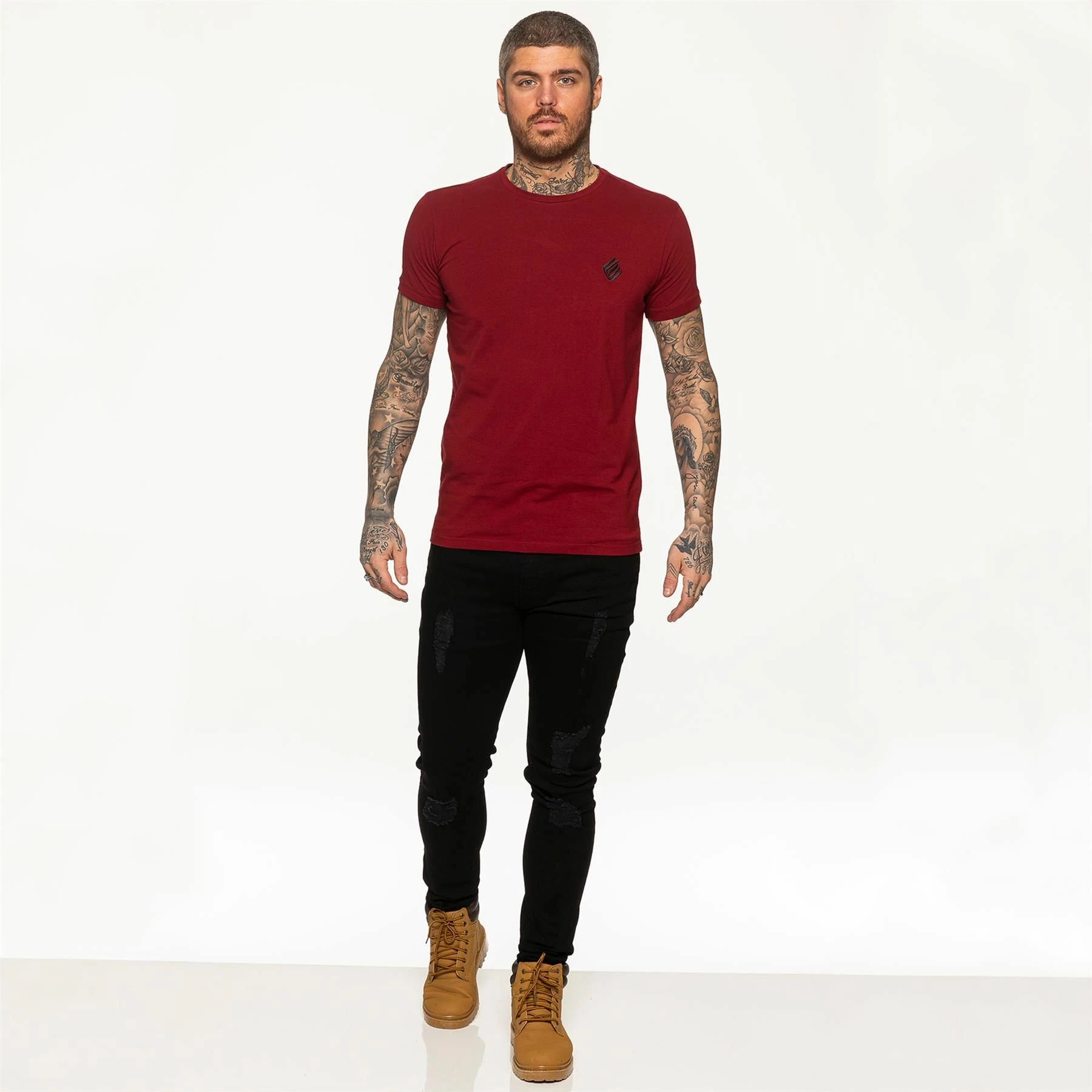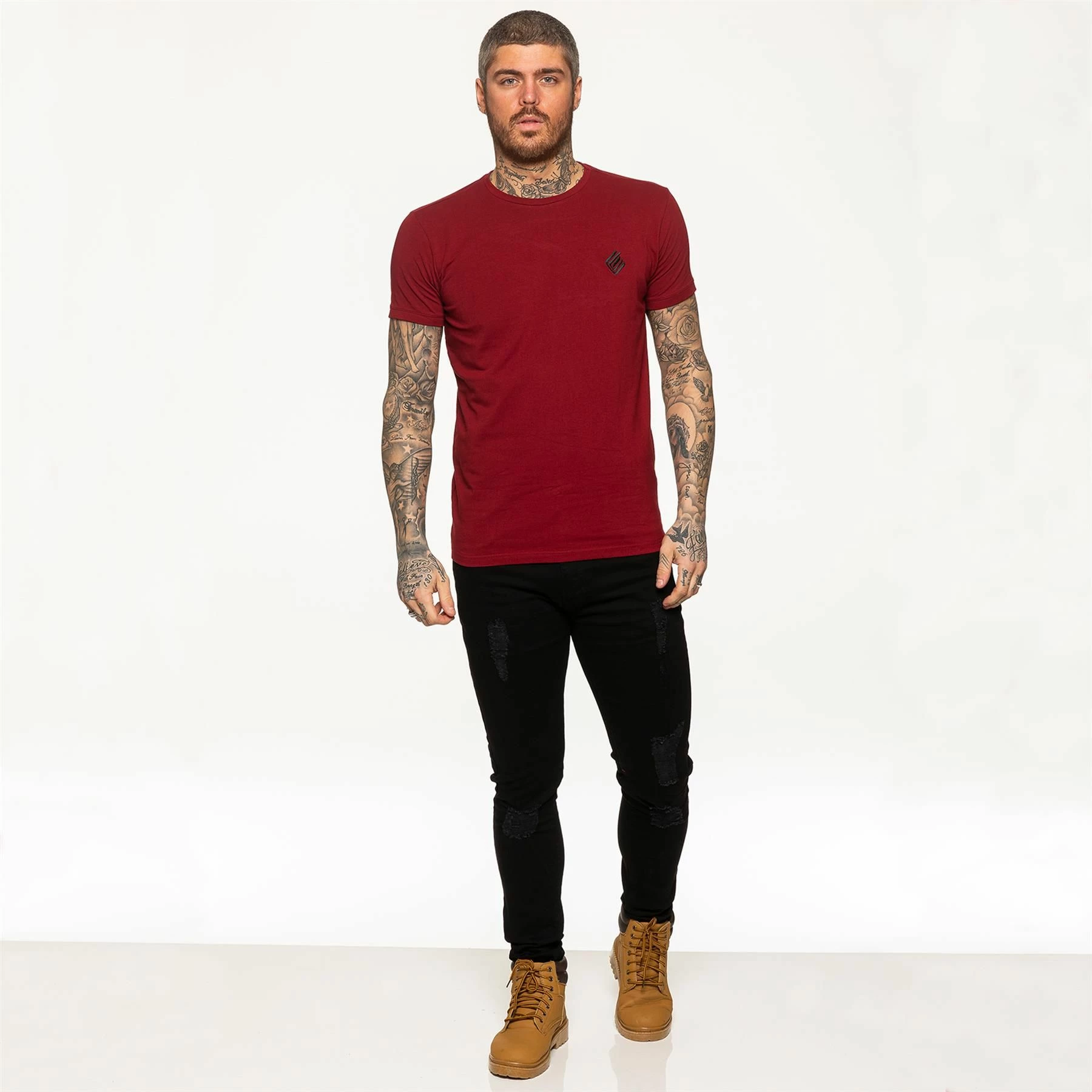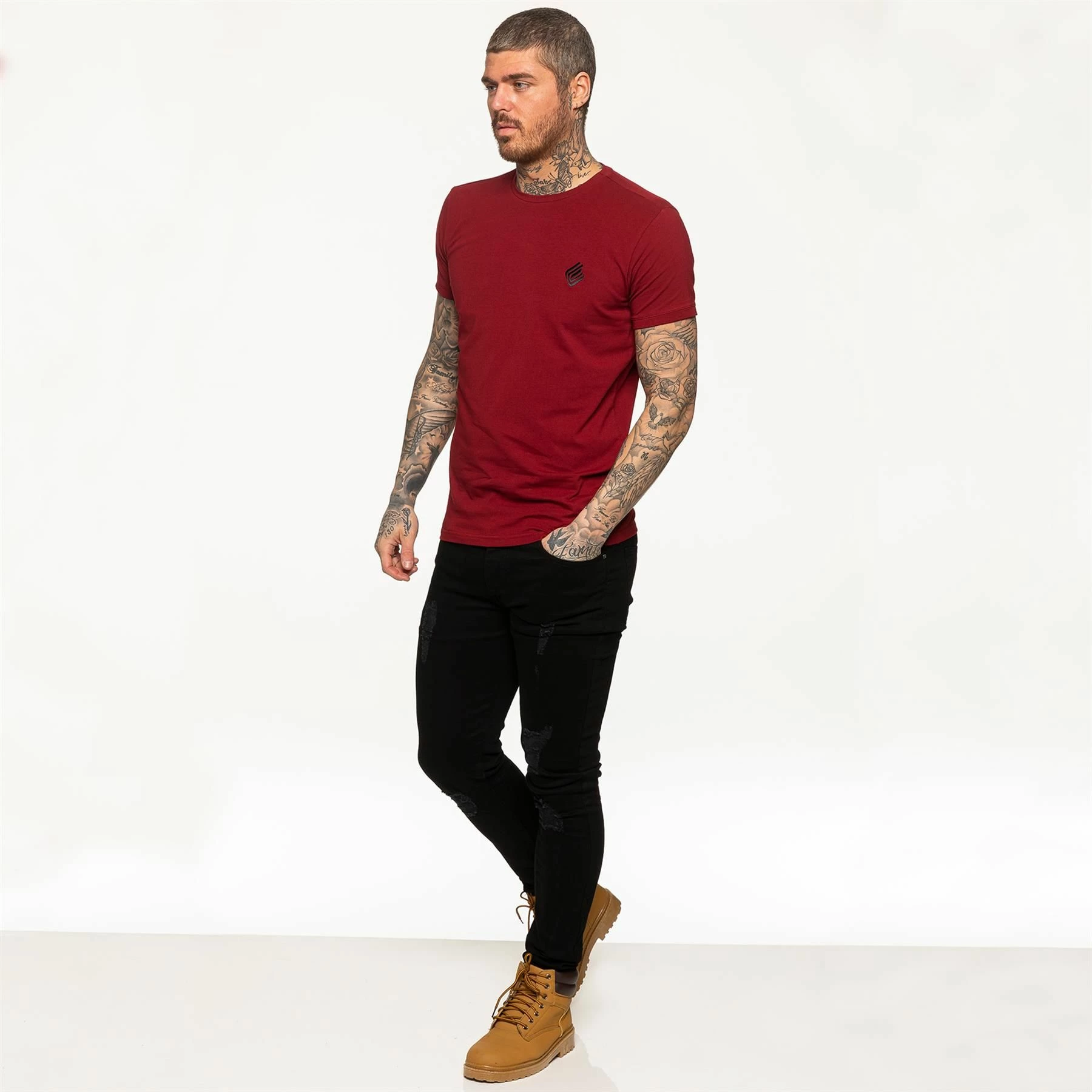 Enzo Men’s Red Designer Athletic Muscle Slim Fit T-shirt, Extra Stretch Fabric Provides Comfort and Fits Perfectly on the Body, Enzo Embroidered Logo on The Front, Crew Neck and Short Sleeves, 95% Cotton, 5% Elastane, Machine Washable and is Ideal for Gym and Casual Wear.