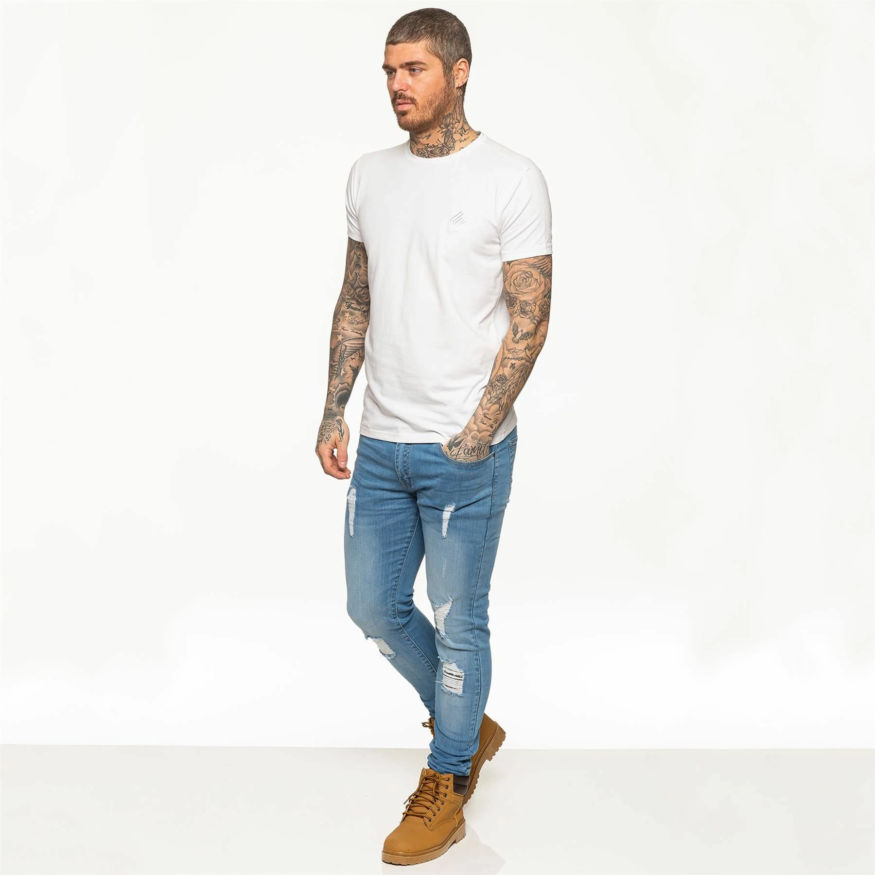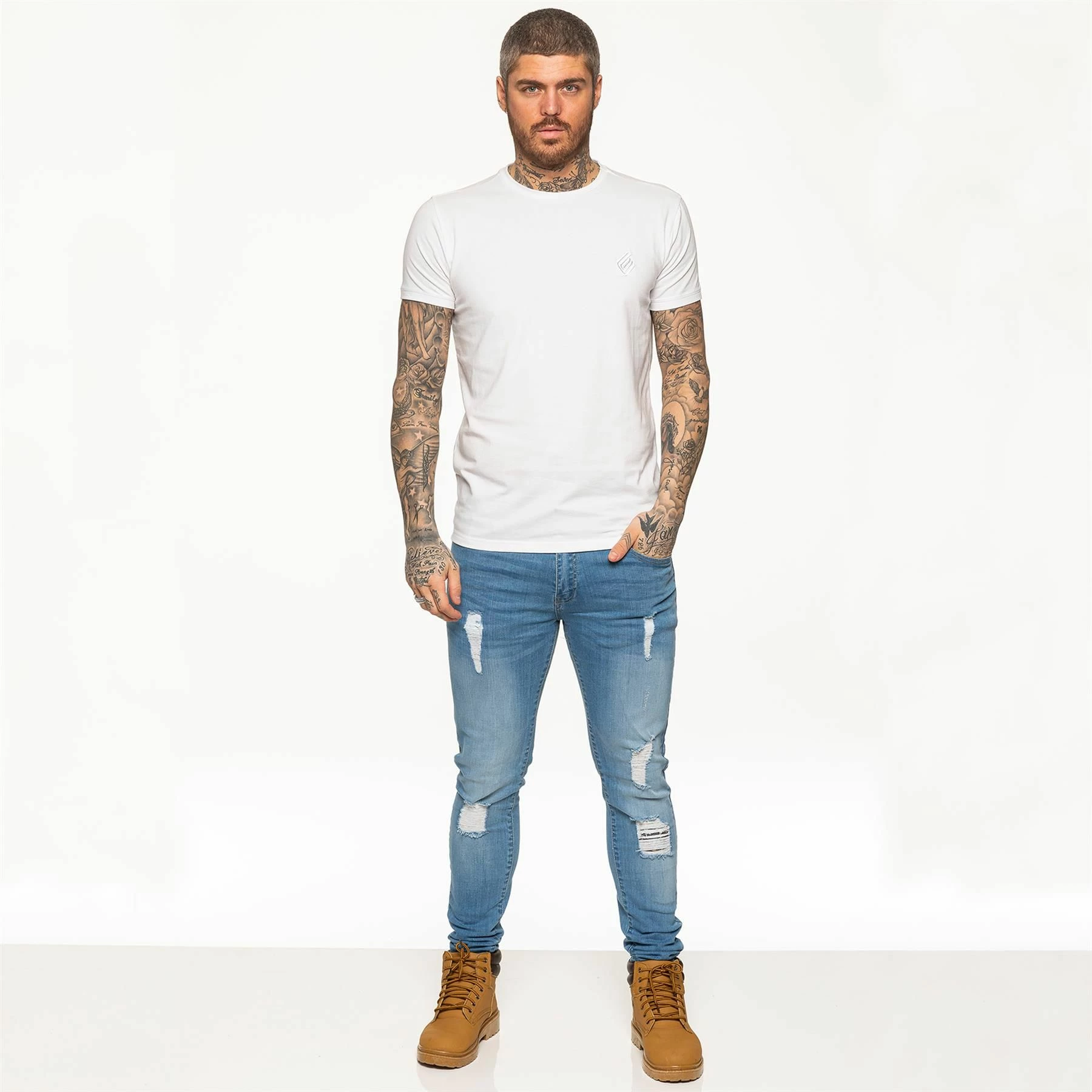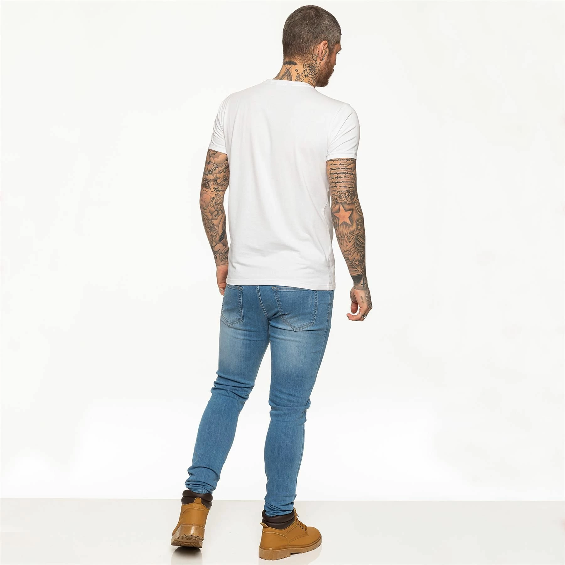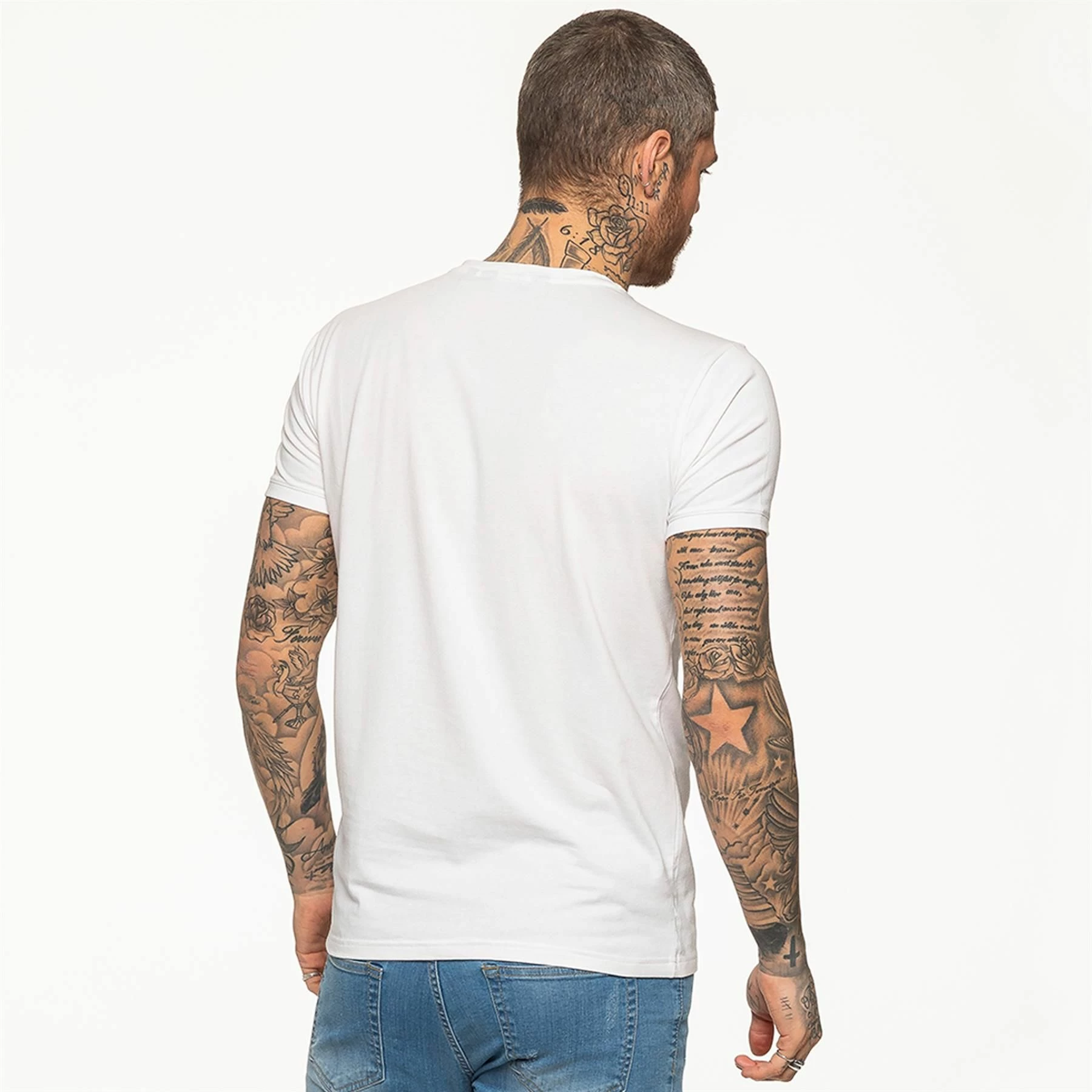 Enzo Men’s White Designer Athletic Muscle Slim Fit T-shirt, Extra Stretch Fabric Provides Comfort and Fits Perfectly on the Body, Enzo Embroidered Logo on The Front, Crew Neck and Short Sleeves, 95% Cotton, 5% Elastane, Machine Washable and is Ideal for Gym and Casual Wear.